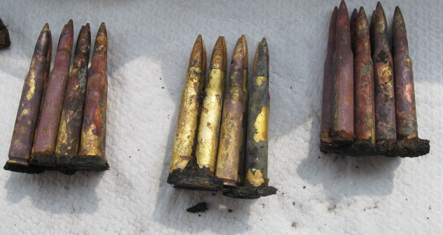 Habe die Munition bei der Polizei abgegeben. Am Anfang habe ich mich darüber gefreut sowas zu finden aber jetzt meide ich solche Stellen (sind nicht wenig) wo das Zeug in Mengen liegt.