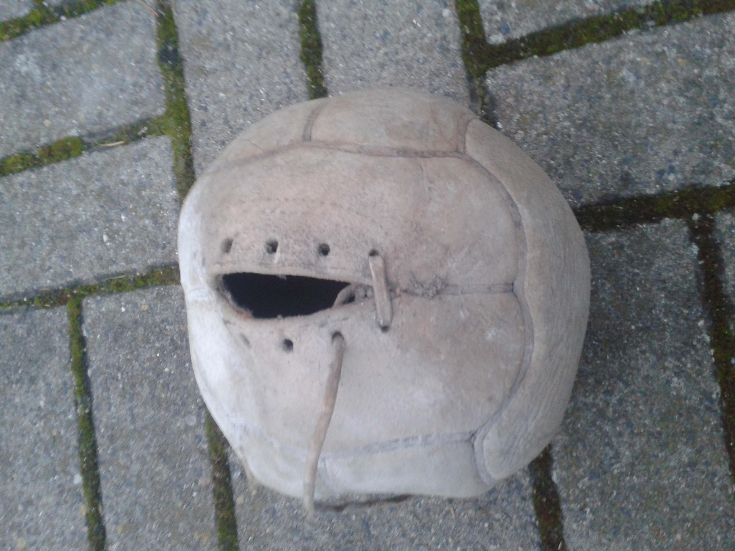 Mit dabei war auch ein alter Fussball, alles komplett in Schweinsleder, selbst die Blase wurde über eine große Ledernaht gewechselt.