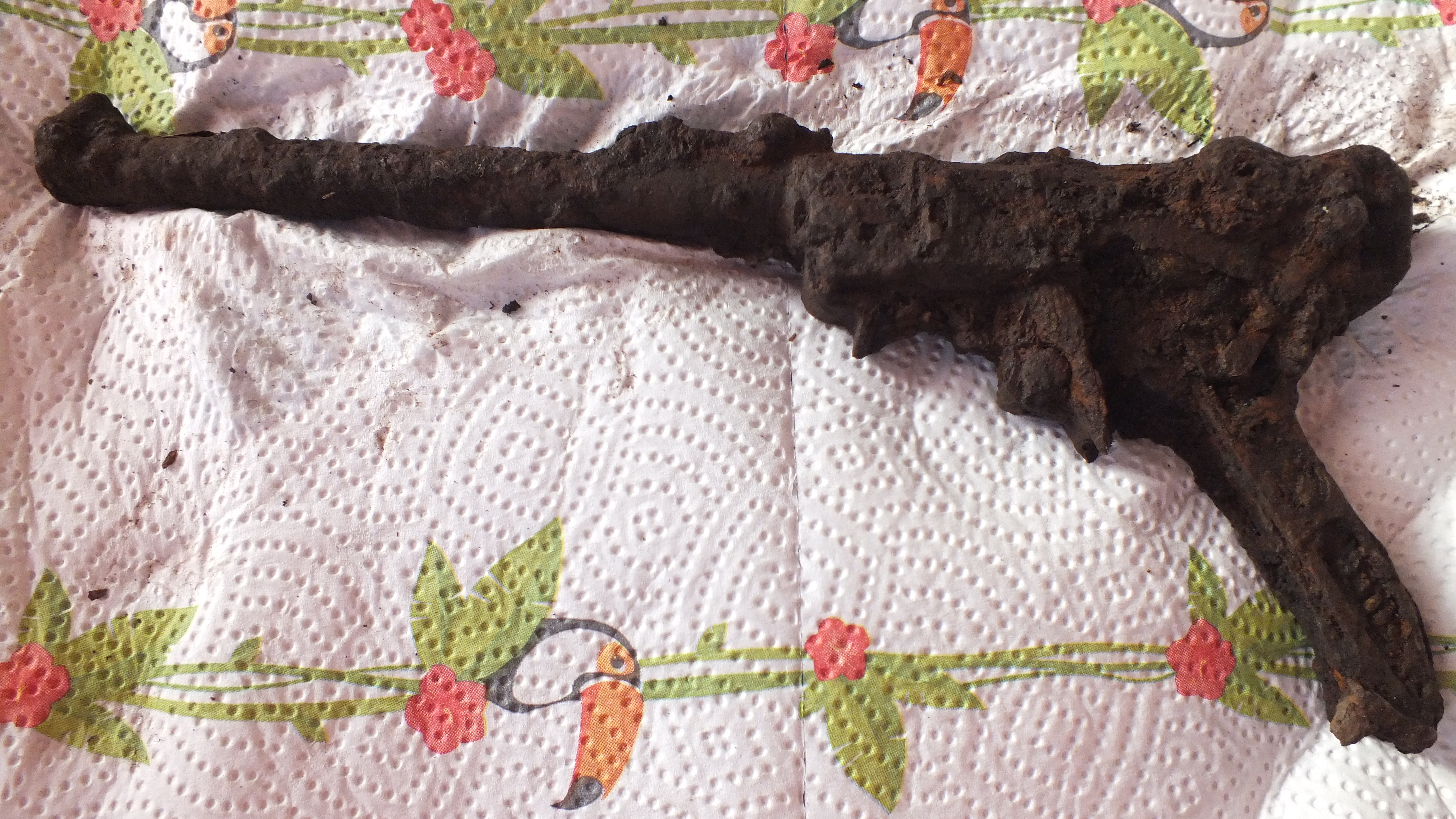 ist eine P08 in der Artillerie-Ausführung....vielleicht liegt auch noch das Trommelmagazin im Teich.