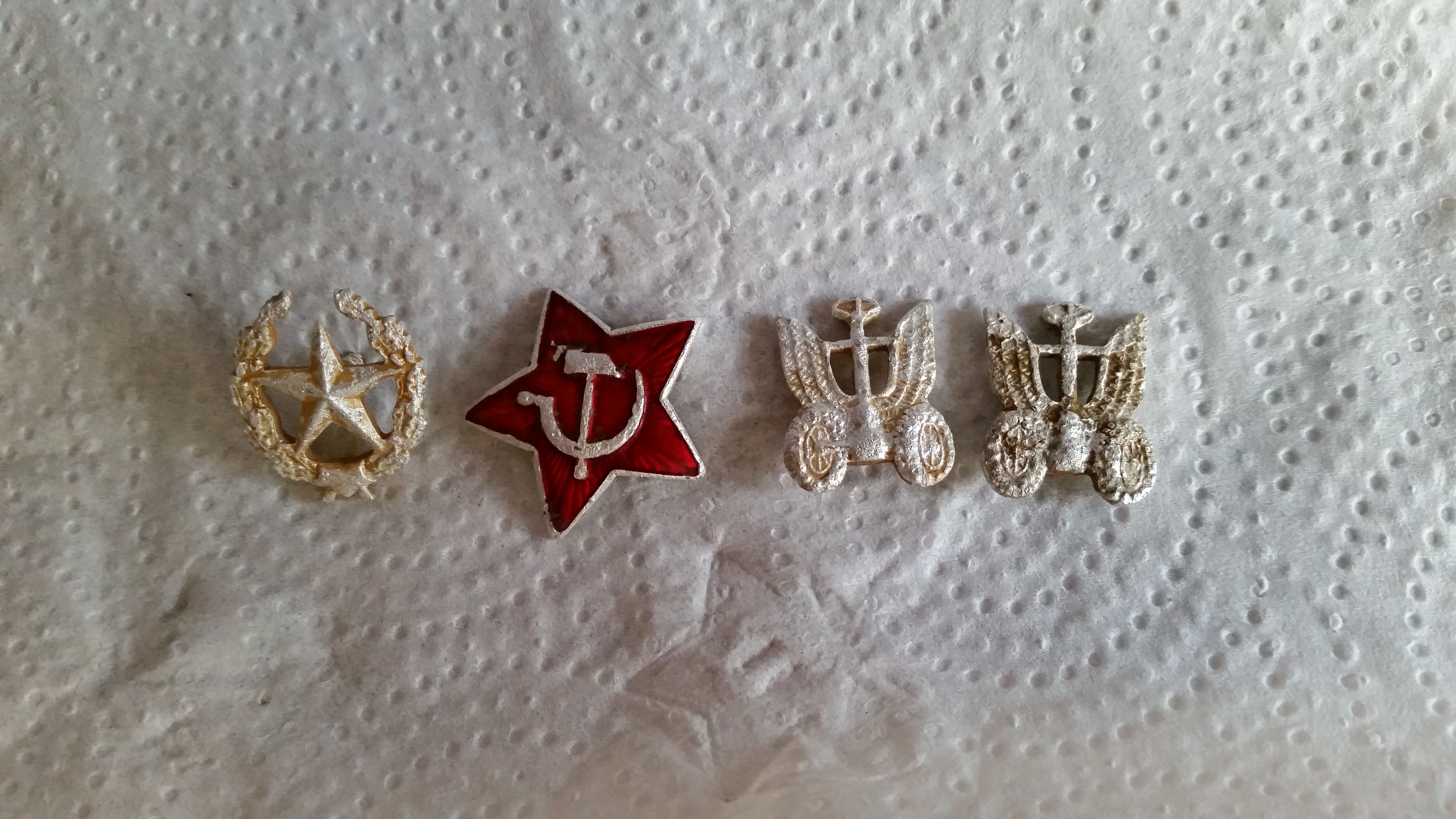 hab diese kleinen Abzeichen gefunden, dass sie russisch sind ist ja nicht schwer zu erkennen.