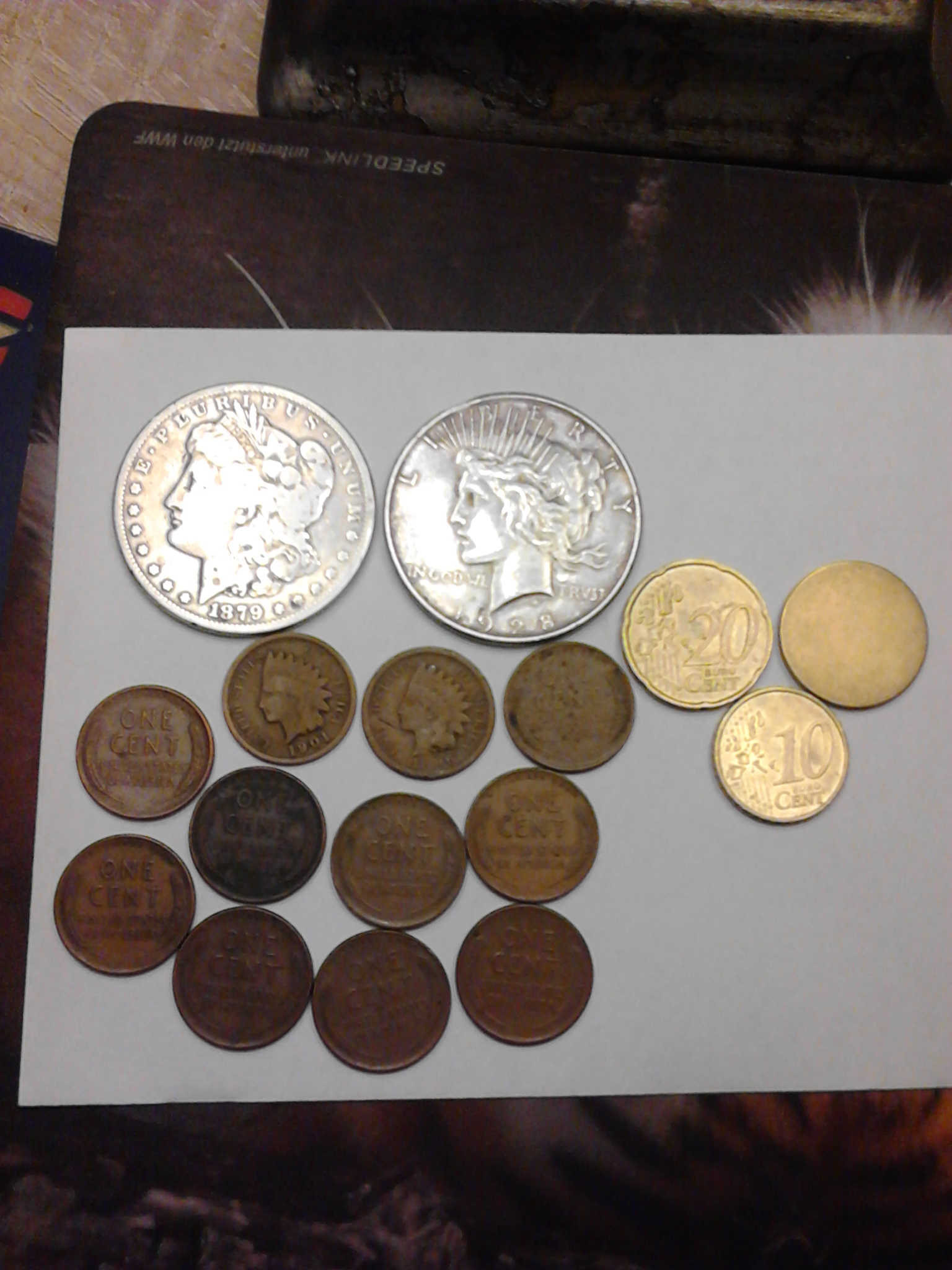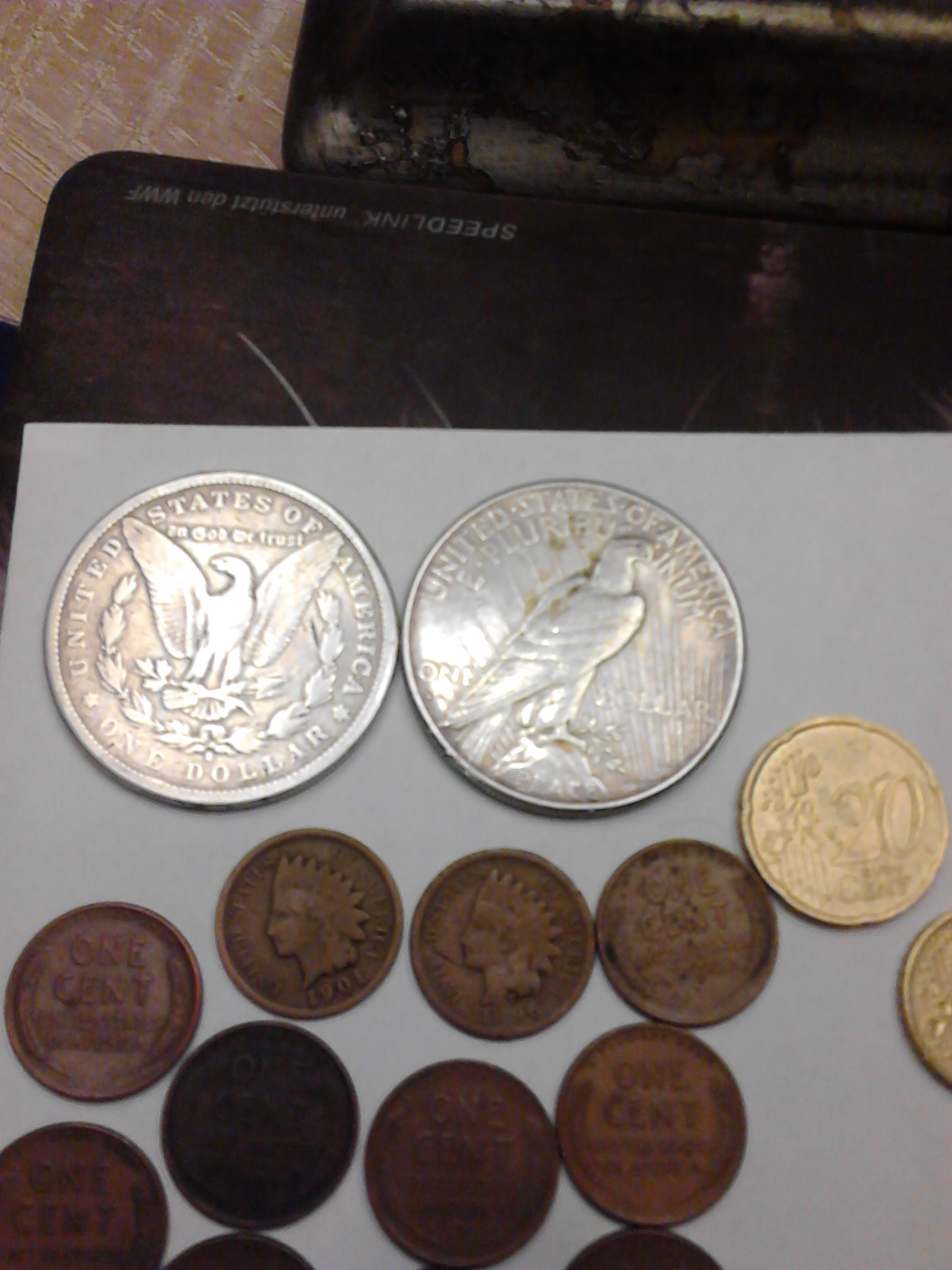 zwei silber dollar....einmal einen morgan dollar...der andere ein peace dollar,1879,1928