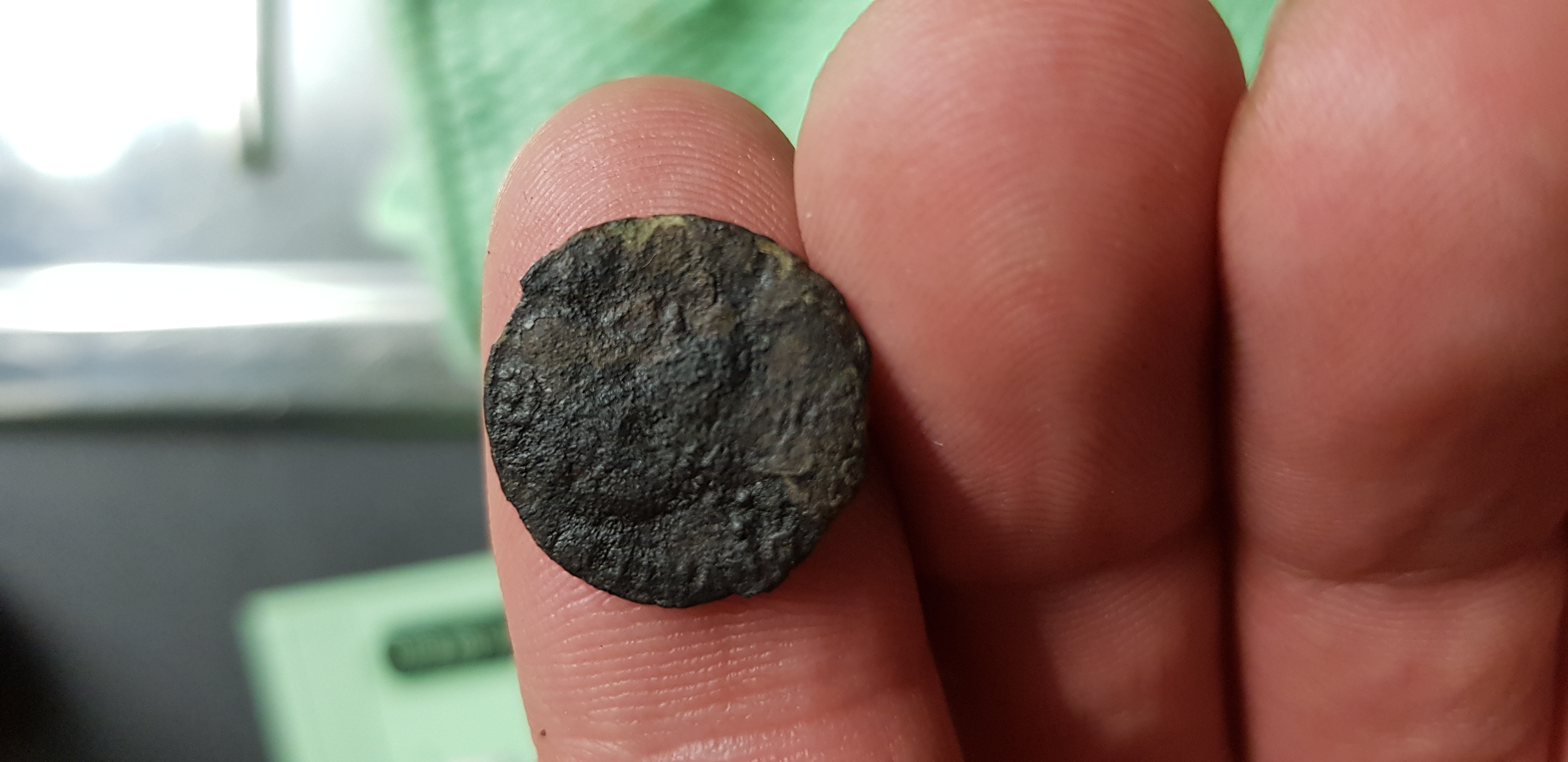 Das erste müsste doch ein follis sein oder? Und was ist das andere? Teil einer Fibel vielleicht?