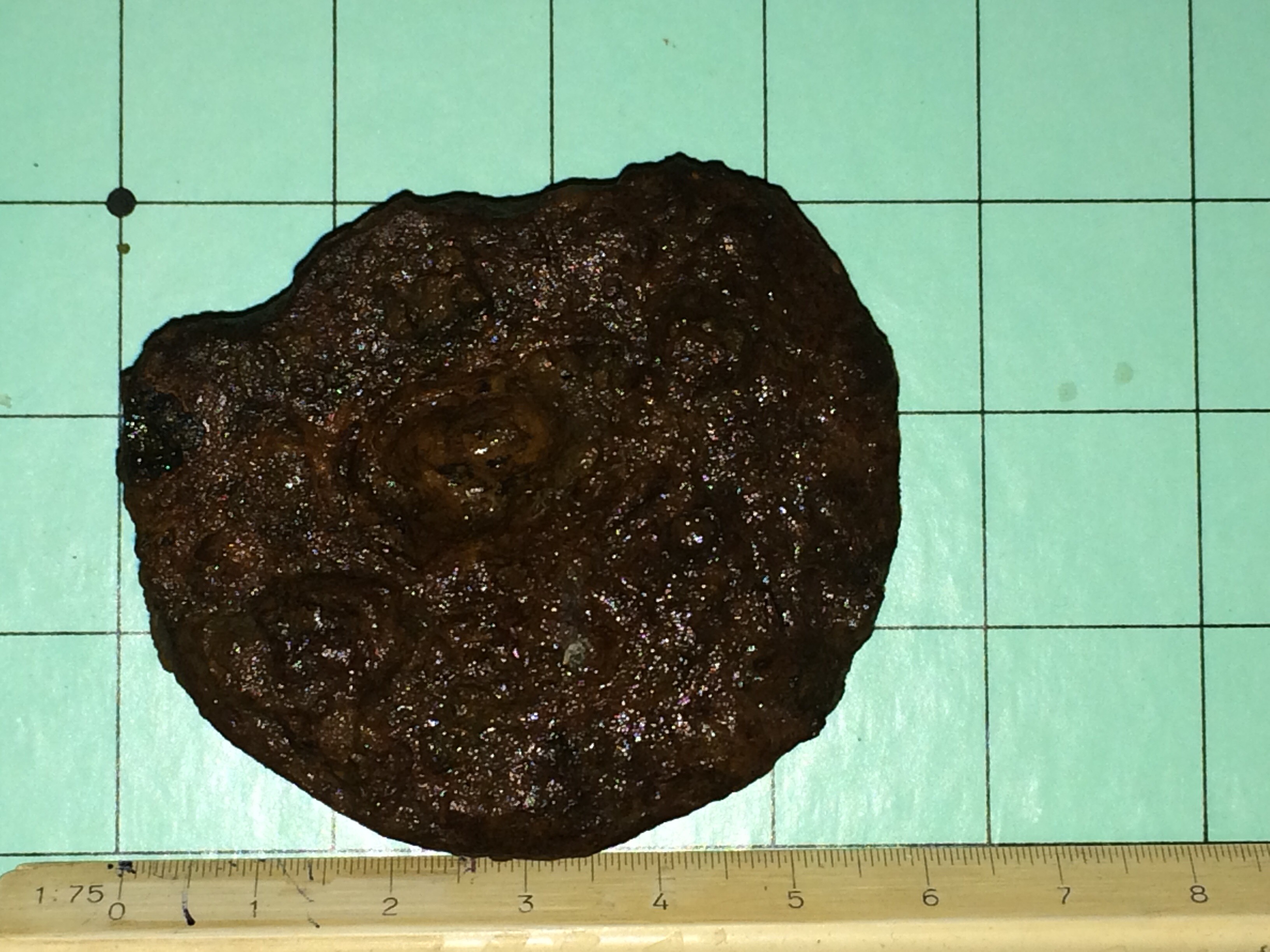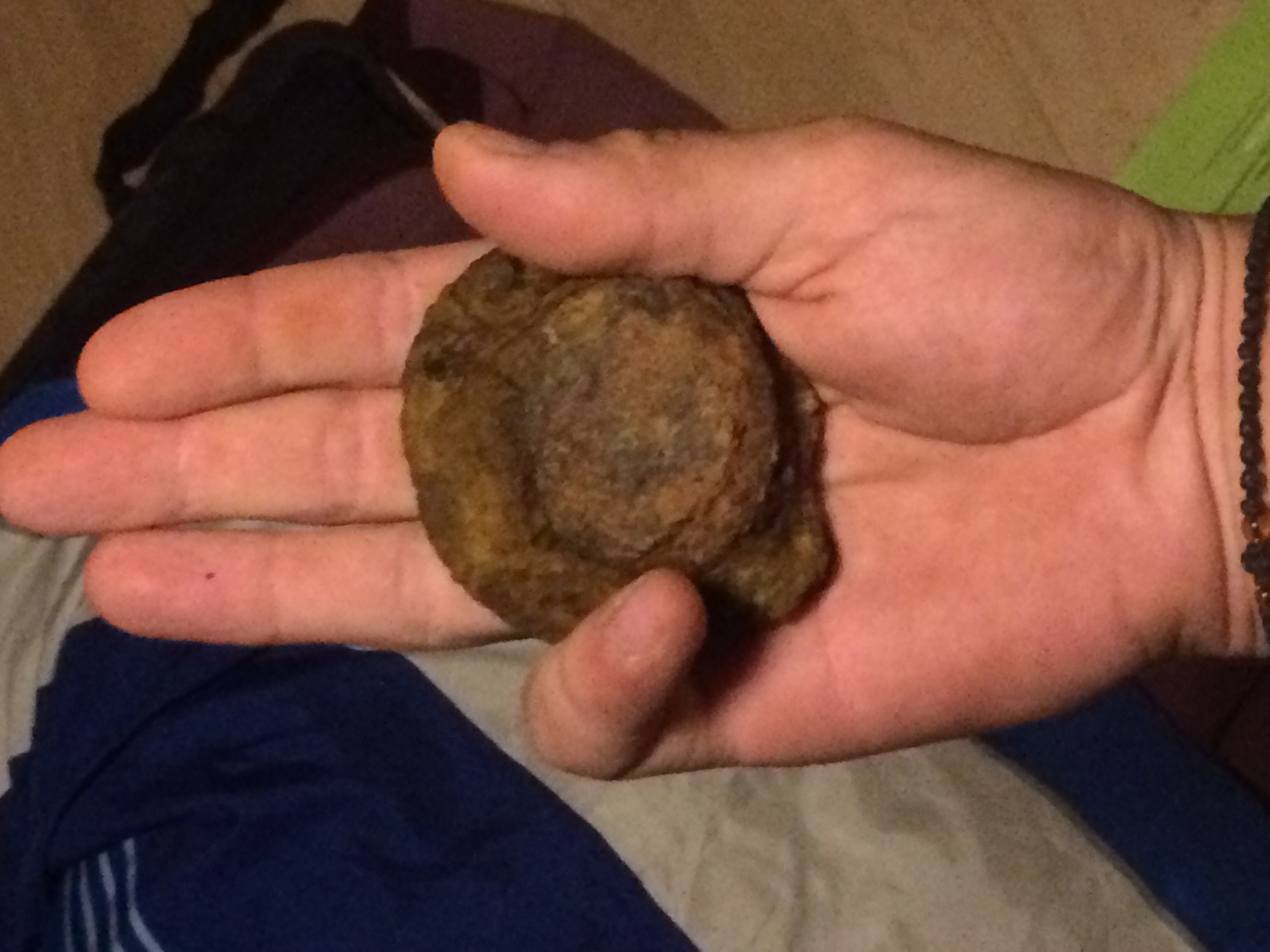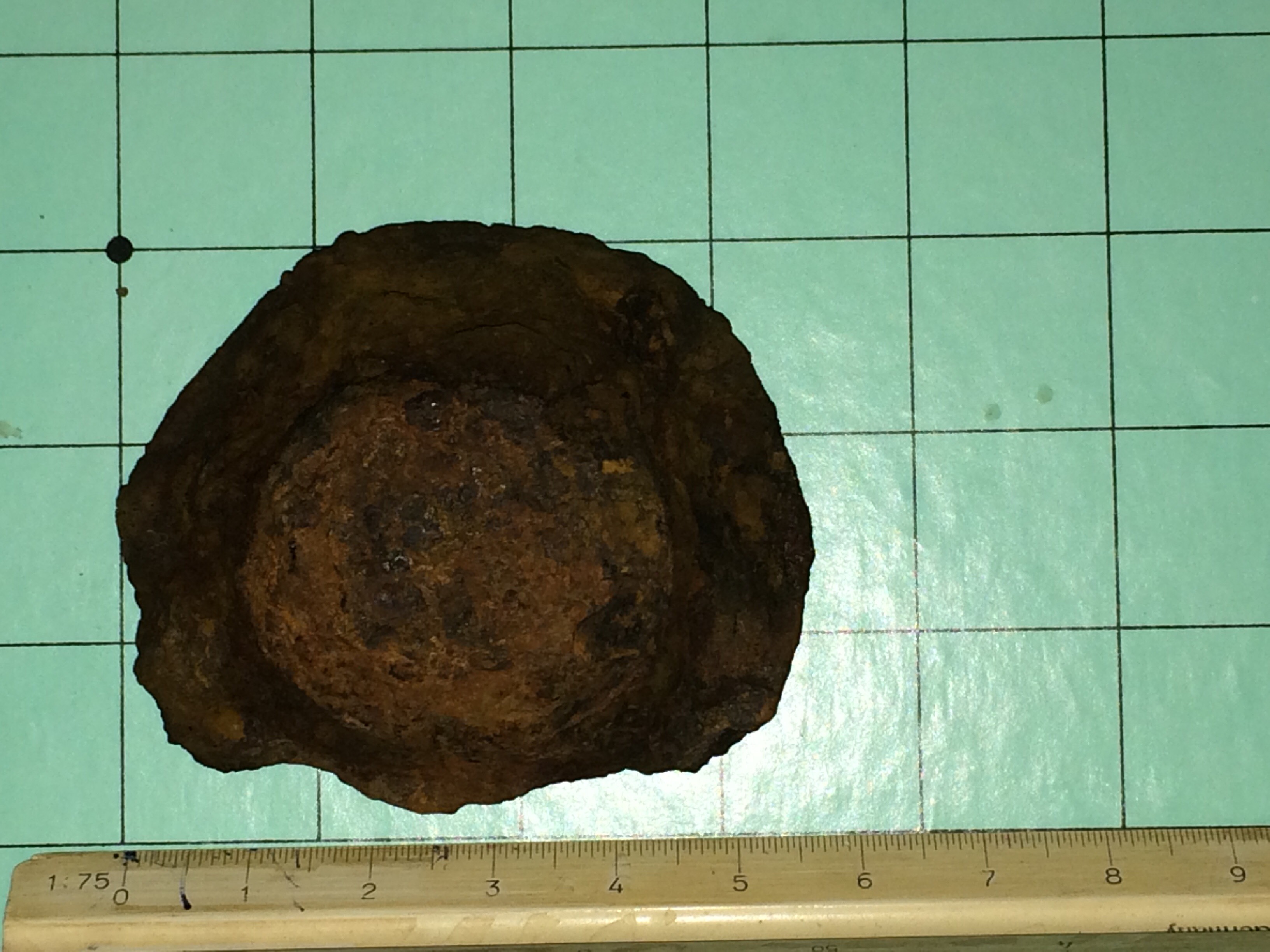 Er ist alt, vermutet ein Guss mit relativ niedrigem Eisenanteil. Man sieht, dass es auf einer Fläche gegossen wurde, denke ich. Ich meine einen Ecküberfluss zu sehen, welcher leider nicht aus den Bildern ersichtlich ist. Aber in echt kann man ihn auf die "Kante legen".