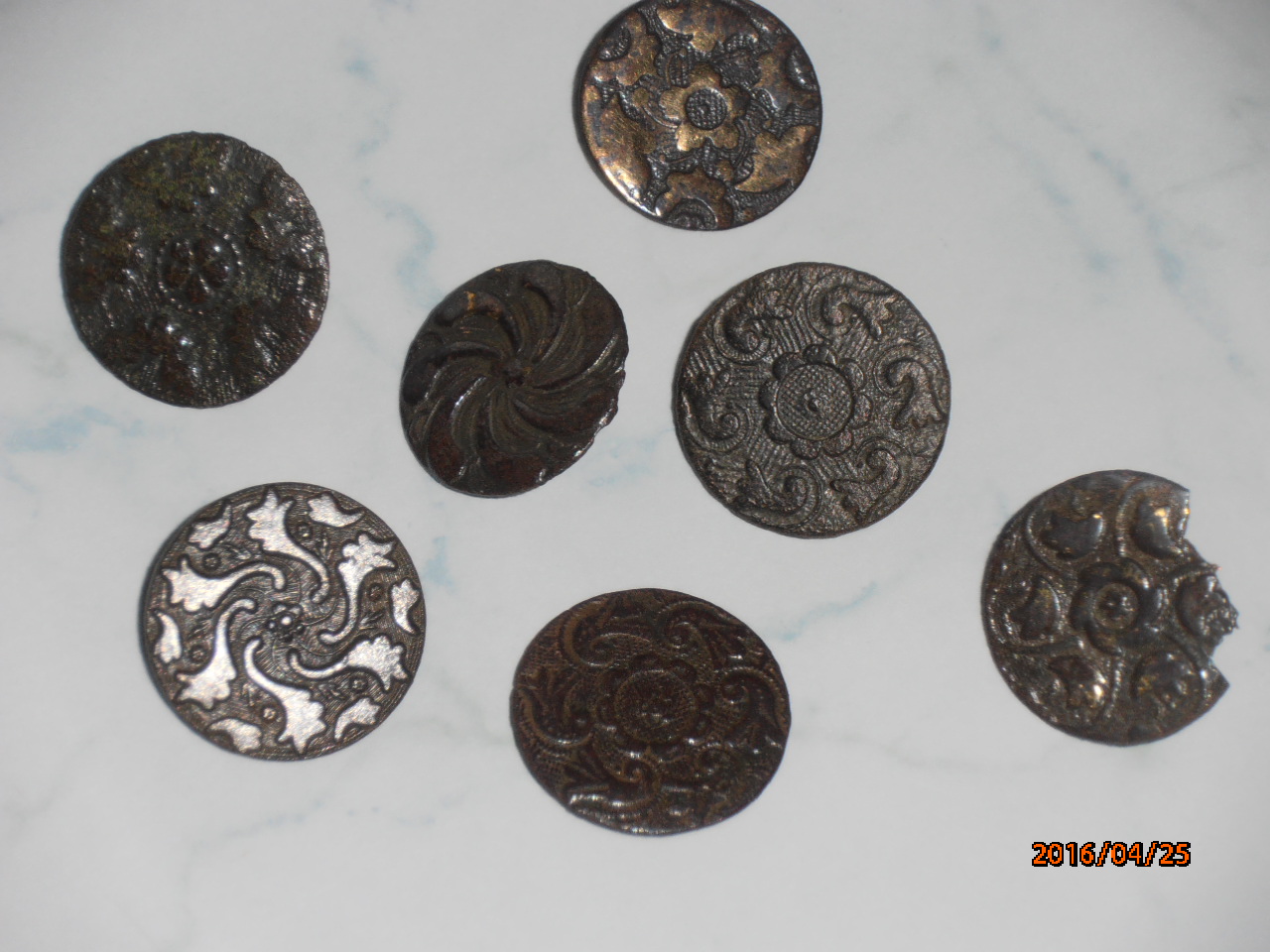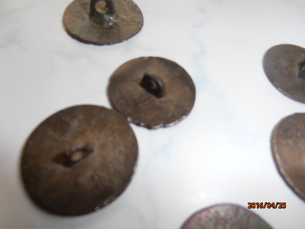 Hallo, vielleicht kann mir jemand bei der Bestimmung dieser Knöpfe helfen, dürften aus Bronze sein, Alter ? Durchmesser ist ca. 2-2,5 cm
