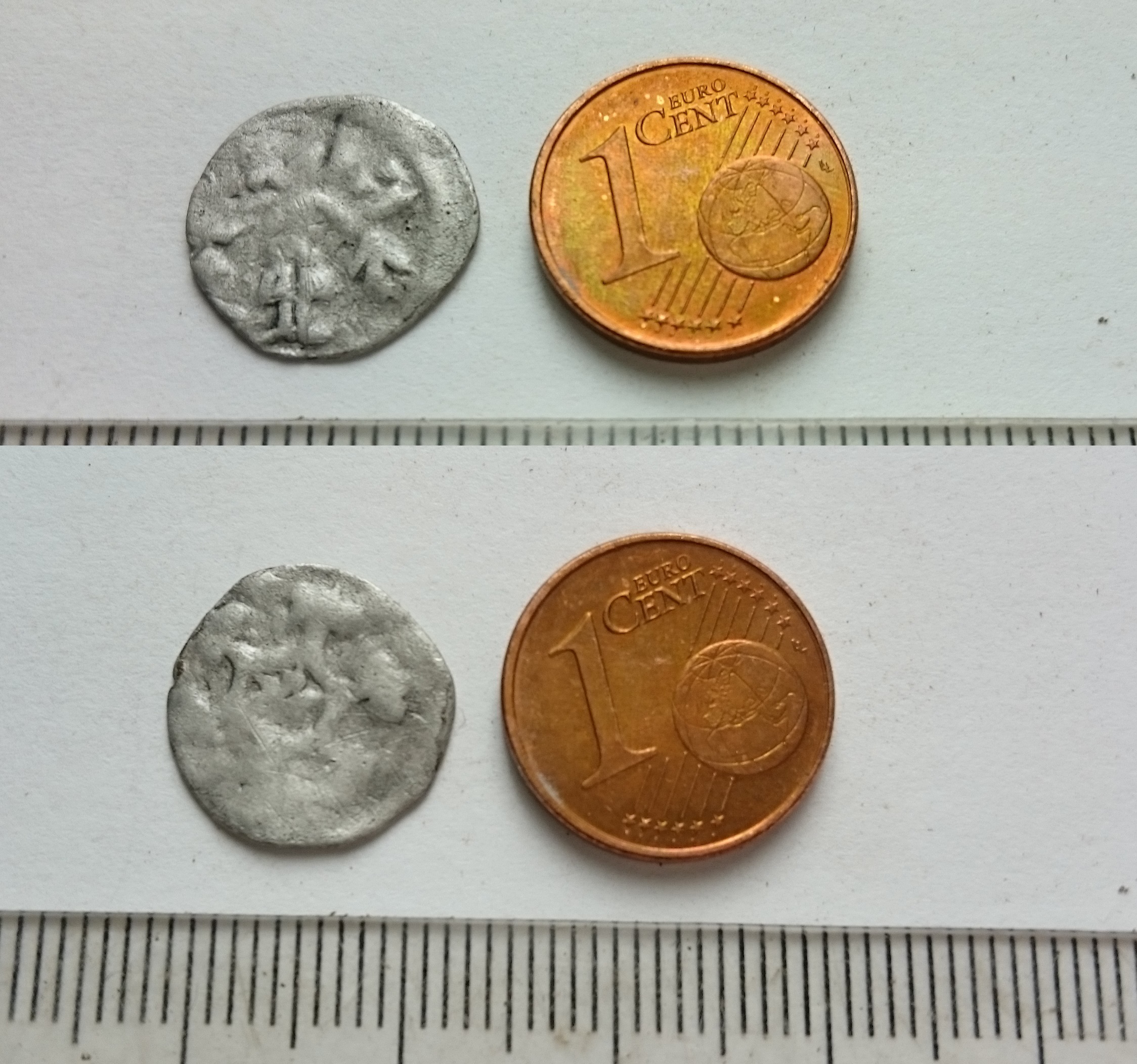 Die Prägung erfolgte mit freiem Hammerschlag. Der Unterstempel war in einen Holzblock eingelassen. Auf ihn wurde der Rohling gelegt. Dann wurde der Oberstempel aufgesetzt und das Münzbild mit einem kräftigen Hammerschlag (maximal zu erzielender Druck ca 500 kg) eingeprägt. Ein zu schwach geführter Schlag äußert sich in einem nicht allzu tief eingeprägtem Münzbild. Gelegentlich führte der Münzmeister einen zweiten Schlag, was sich in „Doppelbildern“ äußert. Leicht schräge Anstellung des Oberstempels bewirkte einseitige Prägungen. Durch den frei in der Hand gehaltenen Oberstempel liegen bei kaum zwei Münzen die Achsen der beiden Münzbilder in derselben Flucht. -http://www.geschichte.uni-wuerzburg.de/institut/fraenkische-landesgeschichte/personal/leng/denar-karls-des-grossen/muenzpraegung-im-mittelalter/