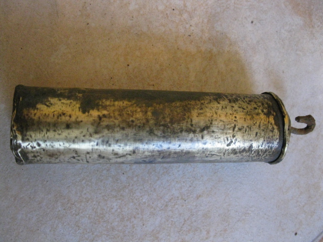 moin leute heute wieder am suchen gewesen und dies (siehe anhang) gefunden. Ich vermute, dass es eine granathülse ist. Das ding ist aus Messing und von der länge ca. 14cm lang und 3,8cm breit. ausserdem hat es eine aufschrift : &BC