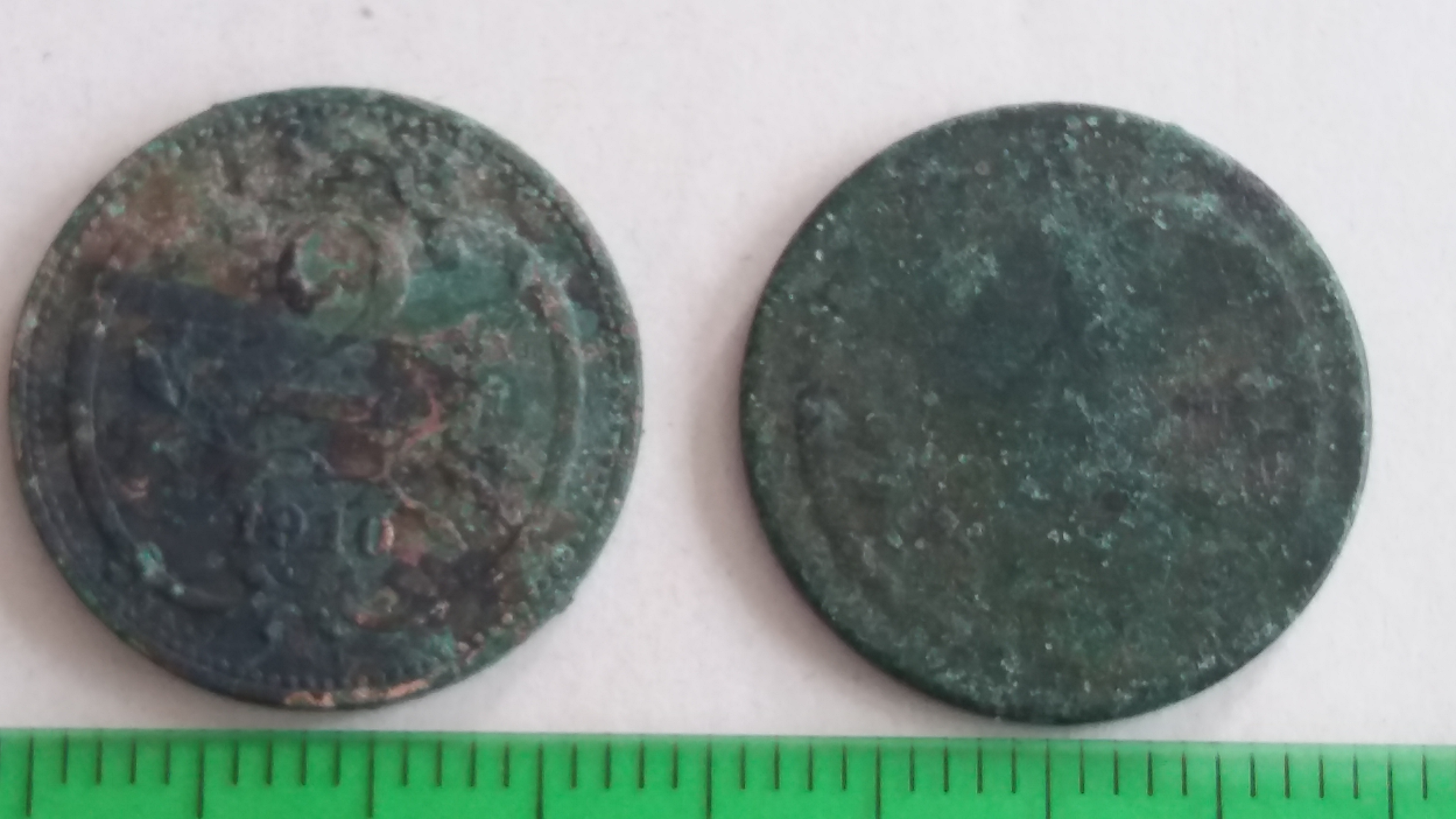 Danke. Sind 2 Münzen . 2x 2 Heller. Bei einen sieht man 1910. Bei anderen ist nicht mehr viel zu erkennen.