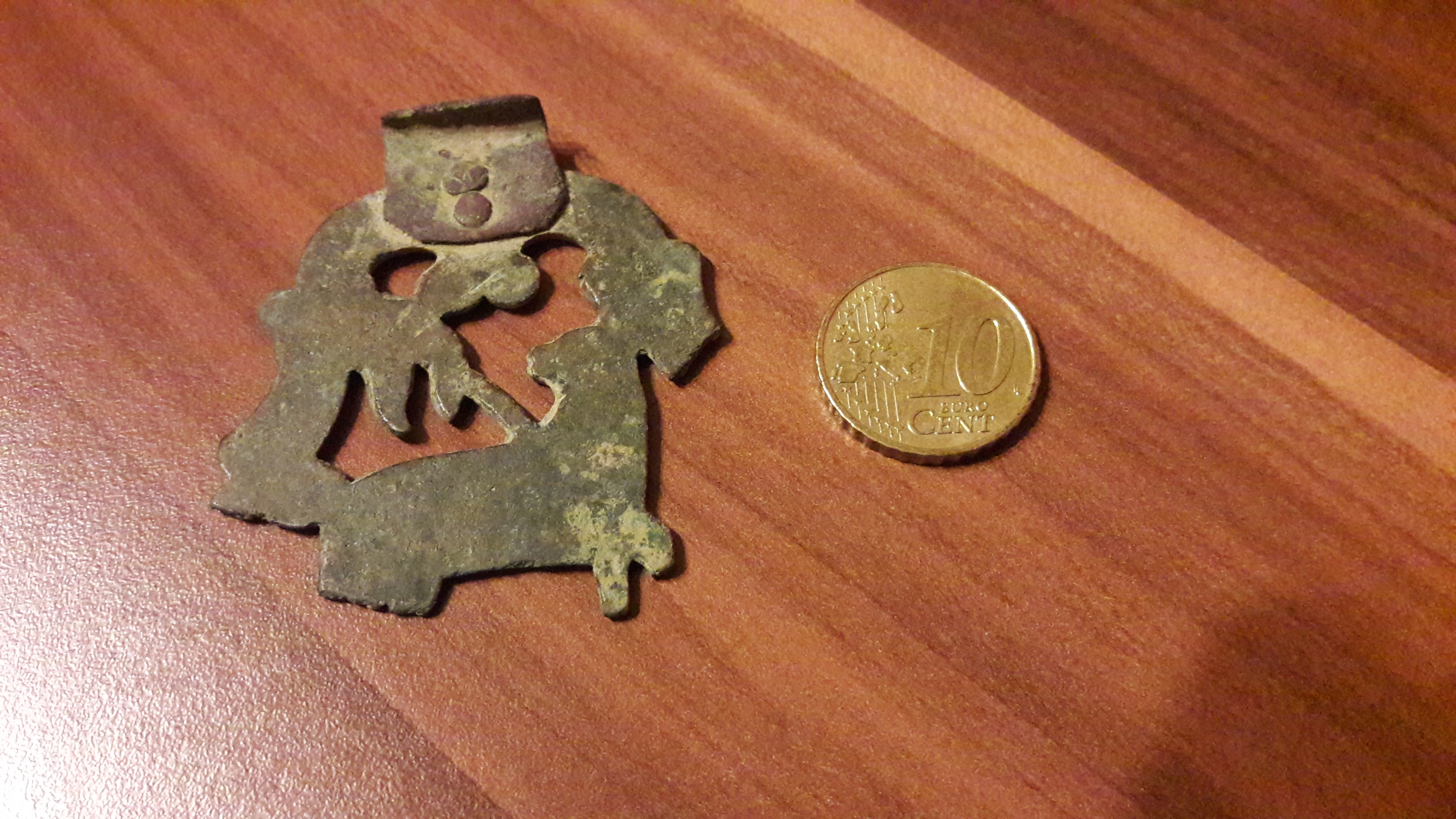 sondeln am Wochenende dieses Objekt gefunden. Kann mir jemand sagen was es ist? Und aus welcher Zeit es ungefähr stammt? Es ist auf jeden Fall ein Tier darauf zu erkennen.