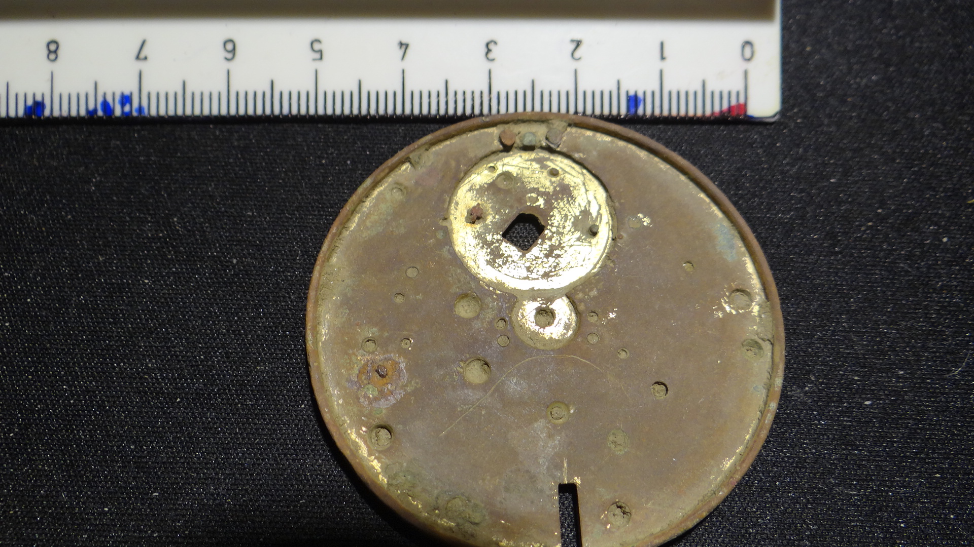 Bin Neuling und habe gleich eine Frage zu meinem ersten Fund. Am Ufer eines Bachs auf einer Wiese habe ich eine Metallscheibe aus Messing gefunden. Sie lag ca. 15 cm tief zwischen Wurzeln und Kieselsteinen. Siehe die Fotos. Der Rand der Scheibe ist mit kleinen Rillen versehen. Leider kann ich mir nicht vorstellen, was das sein soll. Vielleicht ein Rad von einer Wanduhr?