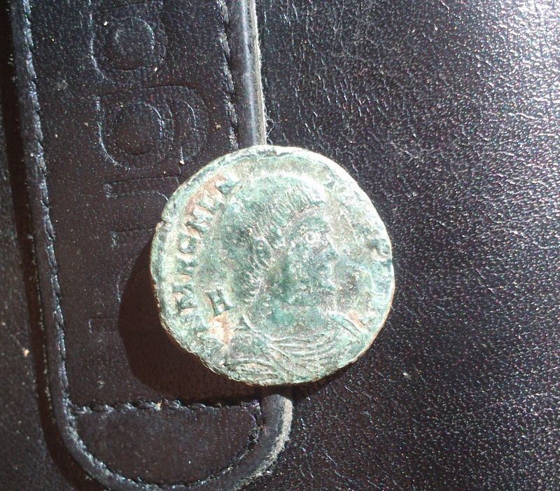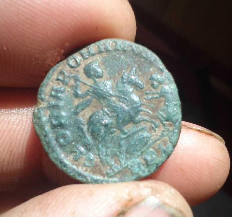 Der total verknasterte Follis wurde oft und sanft mit Kaisernatron abgrieben, bis zu dem Stadium vor der Mikr.Reinigung.