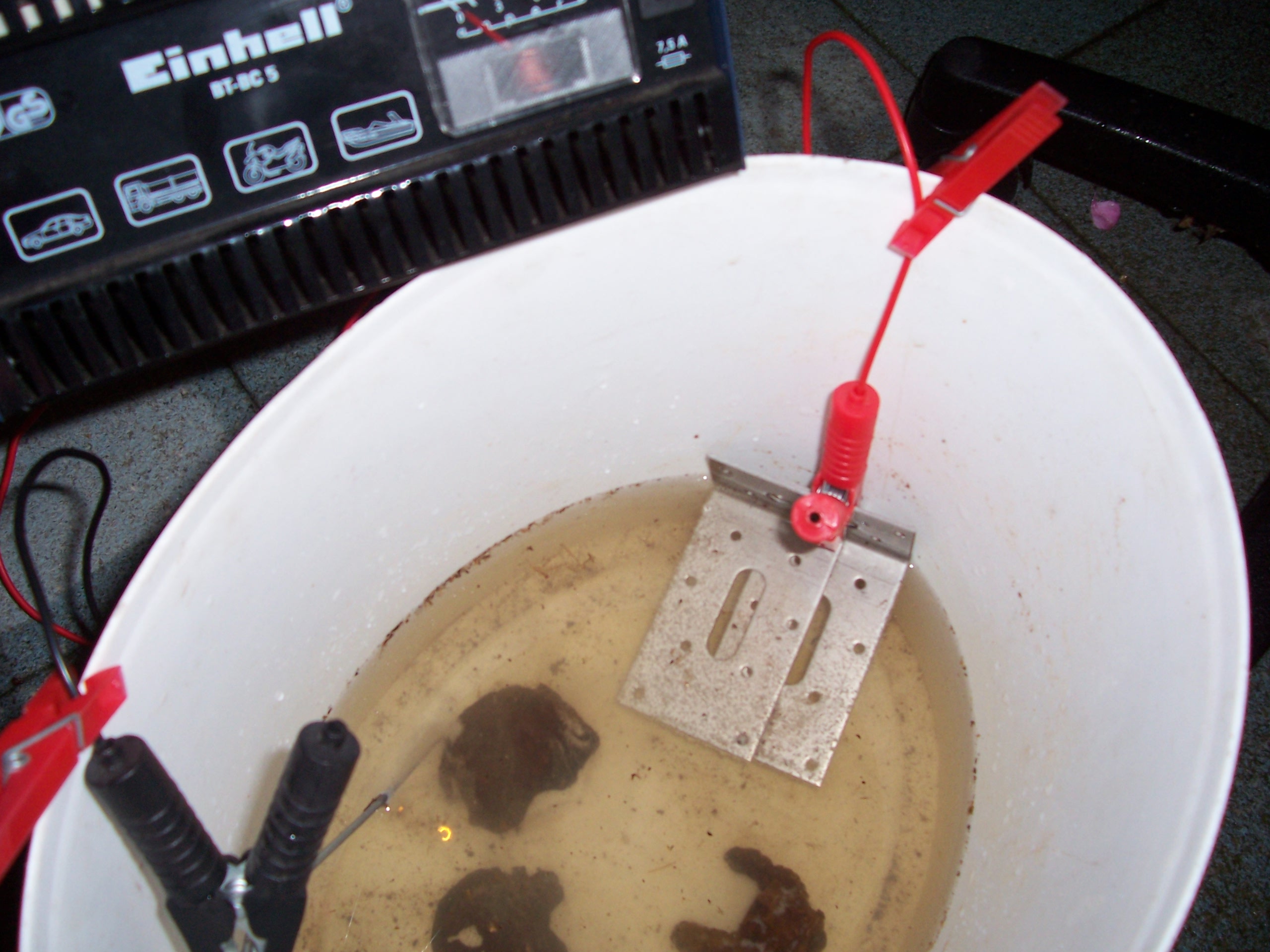 bionic123 hat geschrieben:Ok naja im grossen und ganzen wars schon richtig muss mir so klemmen holen und eine grossere opferanode in meiner beschreibung stand was von 2 löffel natron auf 10 liter is ja dann viel zu wenig.. wielange brauchst du für das hufeisen ca? Danke für die bilder.