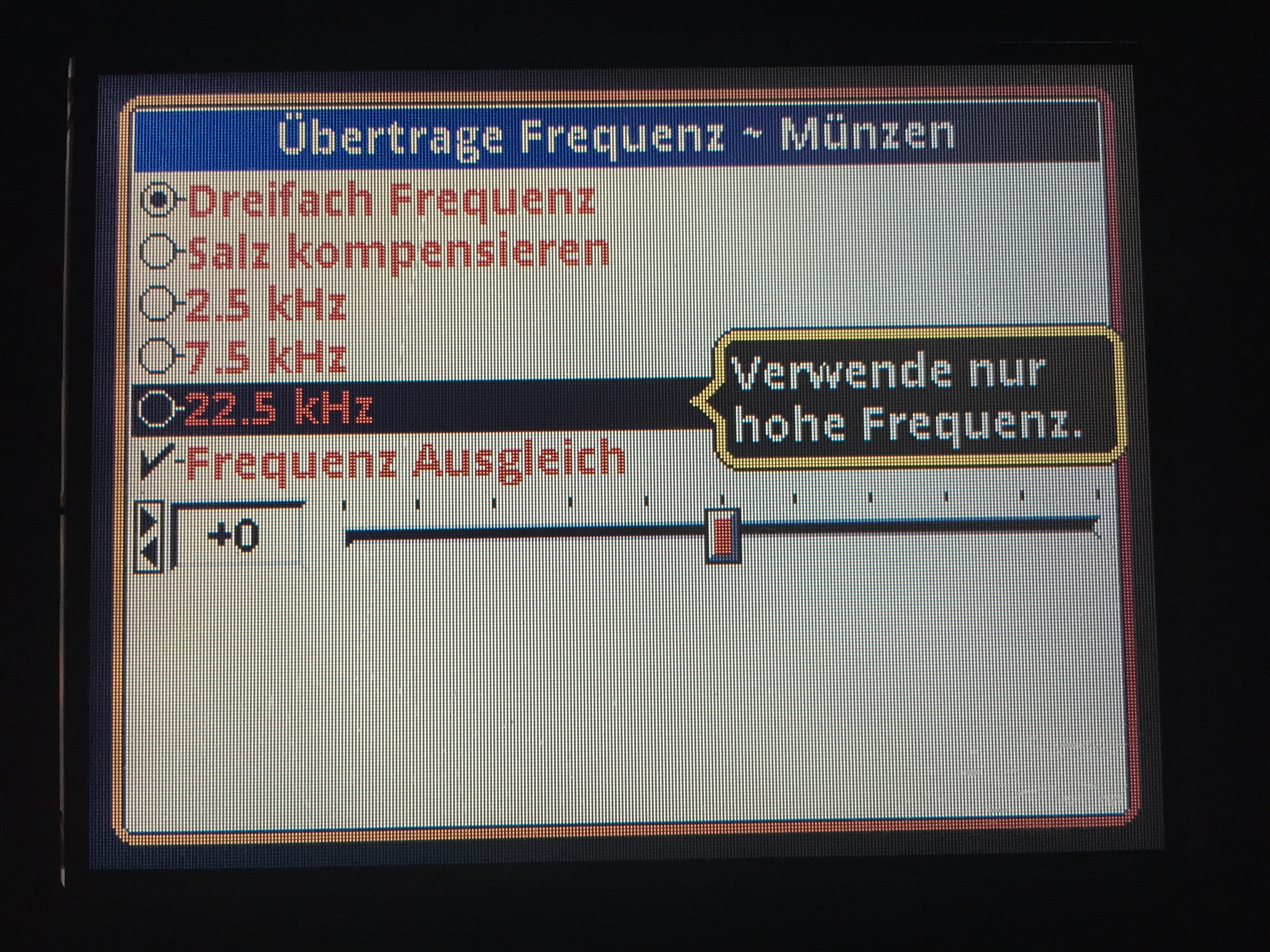 Da allerdings ein Anwender-Fehler in diesem Bereich des Menus unweigerlich dazu führt, dass der Detektor nach seiner Mama ruft (zum Service eingeschickt werden muss), werde ich die erforderliche Anweisung nur auf Anfrage herausrücken.
