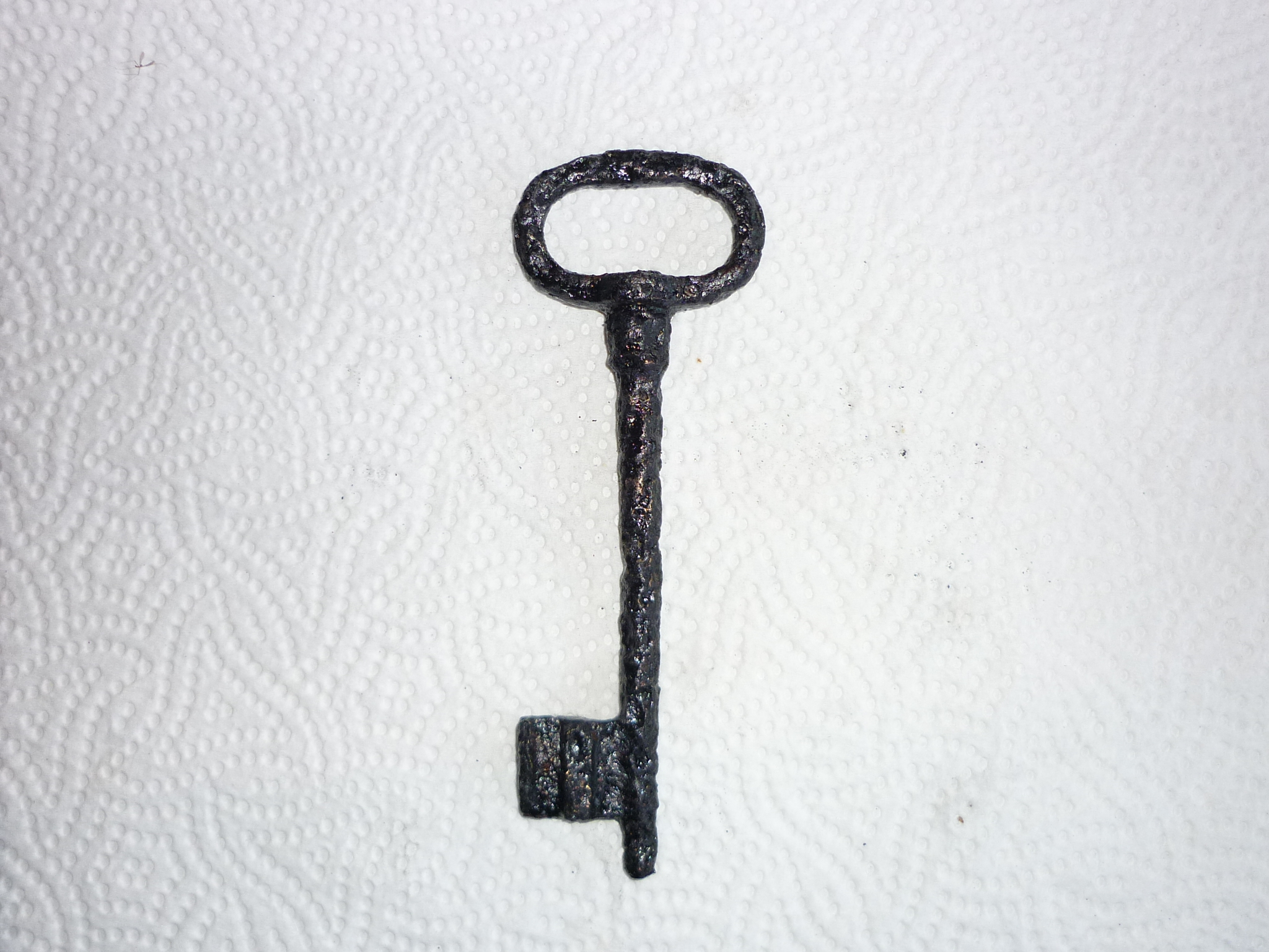 So mein Schlüssel ist jetzt fertig . Wurde am 05.02.16 bis zum 02.08.16 in destillierten Wasser eingelegt , und immer 2 mal die Woche abgebürstet und das Wasser gewechselt . Und so sieht er jetzt aus :thumbup :thumbup :thumbup