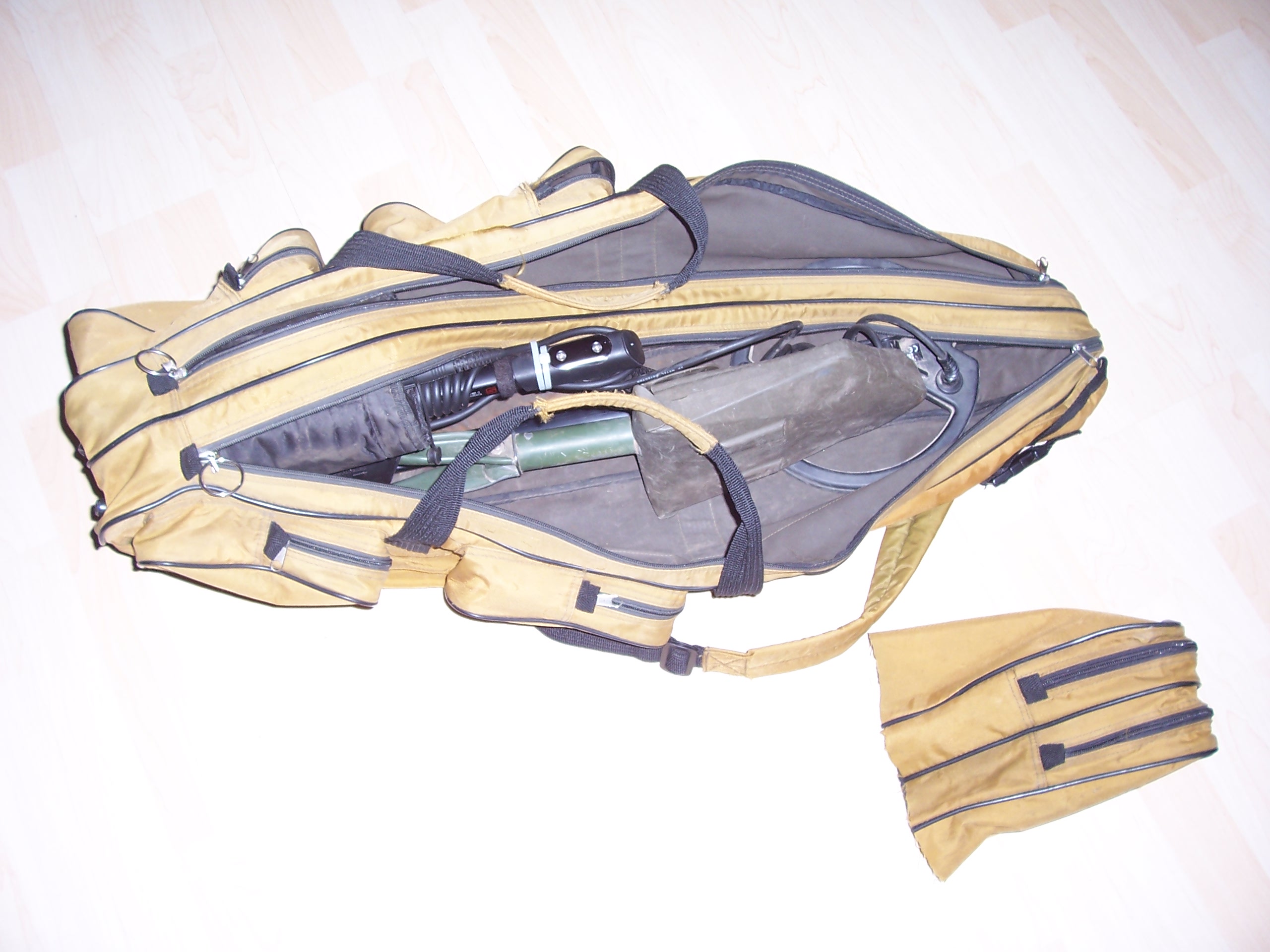 zusammengelegt in einem Minirucksack verstaut wo noch 2 Fl Wasser und die Hülle vom Spaten Platz haben, gehts dann auf Tour.