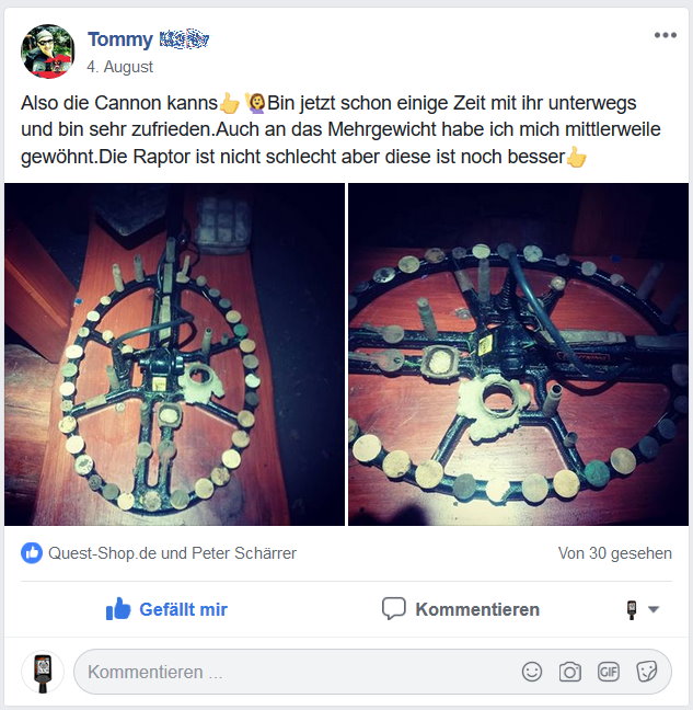 Die CORS Spulen sind sehr sinnvolle Ergänzung für alle, die auf mehr Fläche und Tiefe wert legen. Das Video zeigt die "Cannon" exemplarisch am Quest Q40 Metalldetektor. Am Q20 läuft sie ebenso gut. Beeindruckend war, dass man mit dieser Metalldetektor-Spulen-Kombination die tiefste vergrabene Münze auf unserem Testfeld orten konnte. Zum Vergleich: Im Testfeld liegen 4 vergrabene römische Münzen auf unterschiedlichen Tiefen. Die meisten Metalldetektoren bringen bei dieser vierten Münze keinen Ton und tun sich bereits mit der dritten Münze sehr schwer. Der Q40 konnte sowohl mit der CORS Cannon als mit der CORS Strike Spule alle Münzen sauber orten.