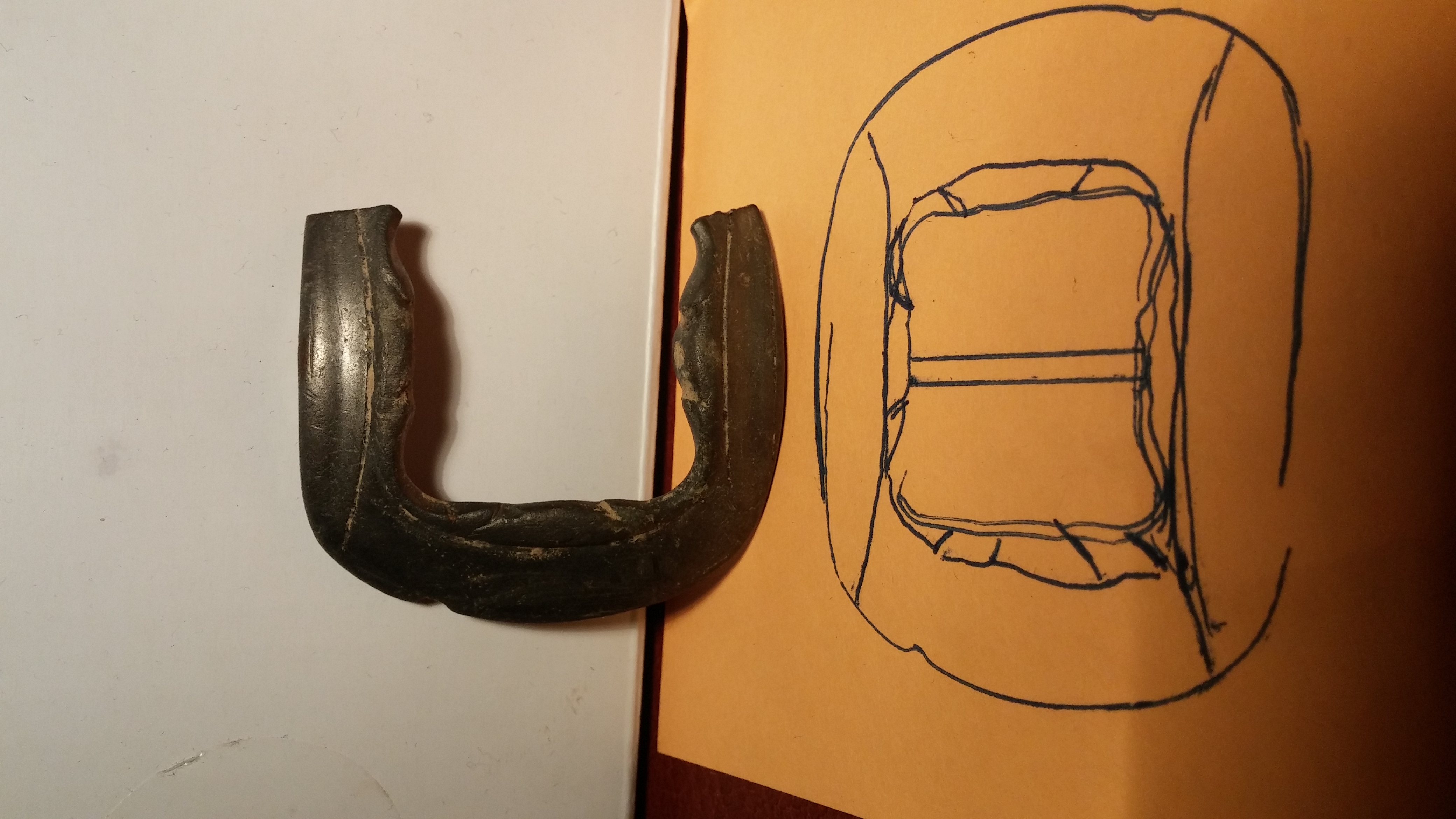 So wie die Zeichnung könnte es ausgesehen haben, denn es fehlt nur der Rand. Wenn man die Bilder anklickt und dadurch vergrößert, kann man die Feinheiten sehr gut erkennen. Es kam übrigens so aus dem Boden !