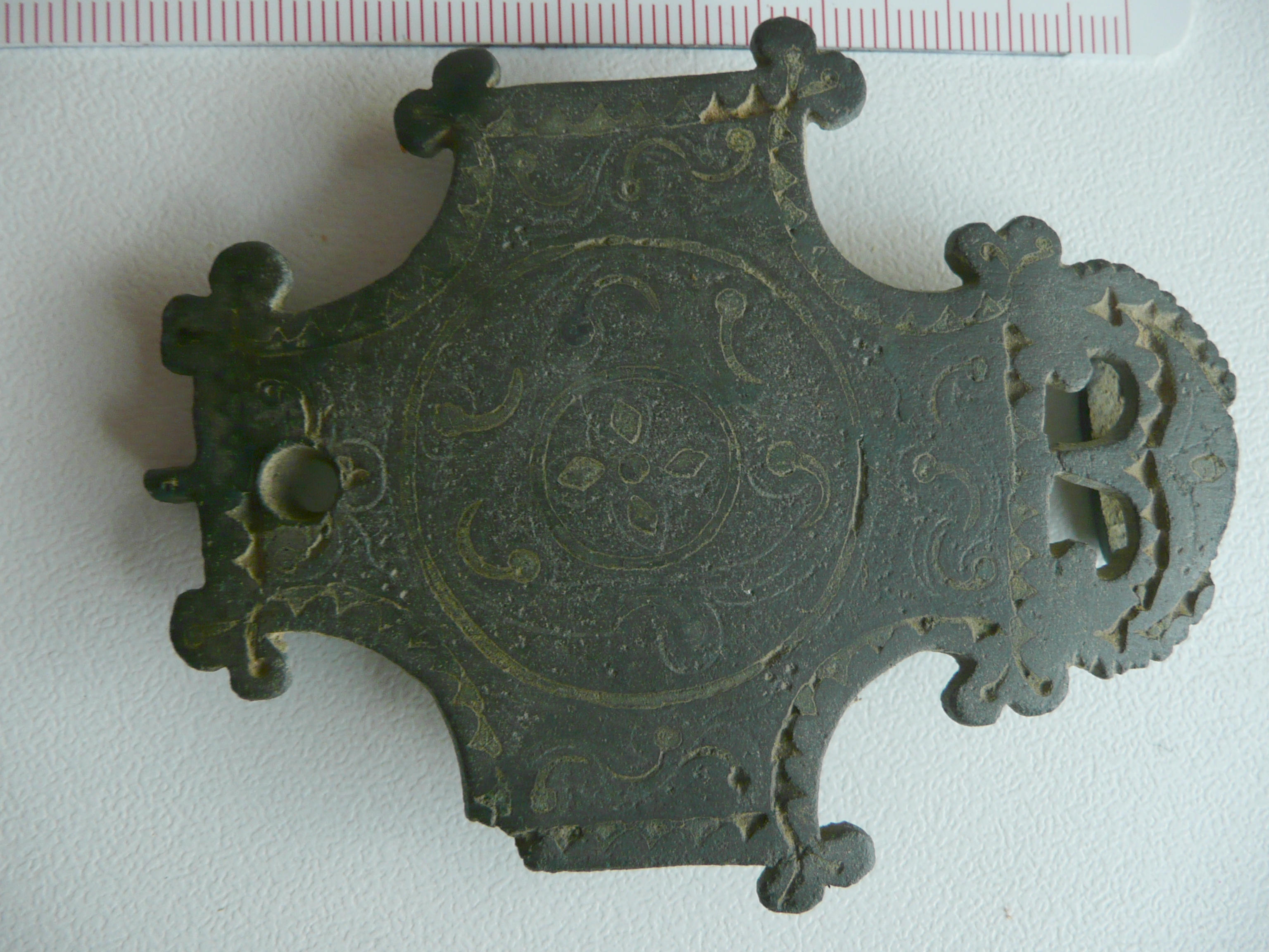 bin immer noch im Krankenstand und nutze jetzt die Zeit, um wieder mal etwas zu posten.Nämlich eine Gürtelschnalle mit Einlagen und Gravierungen, Länge 8 cm und Breite ca. 6 cm, auf der Fundfläche kamen hpts. galloromanische Artefakte. Mittlerweile habe ich das Fundgebiet, wegen zu kräftiger Konkurrenz und Zeitmangel aufgegeben.Laut Archäologe ist die Zeitstellung wohl "Renaissance". Meine Frage: Wie kann man die gelben und grünen Einlagen besser hervorheben oder restaurieren ? Habe etliche Stücke mit Glaspaste oder Zellenschmelzeinlagen und stoße da mit der Restaurierung immer an meine Grenzen.