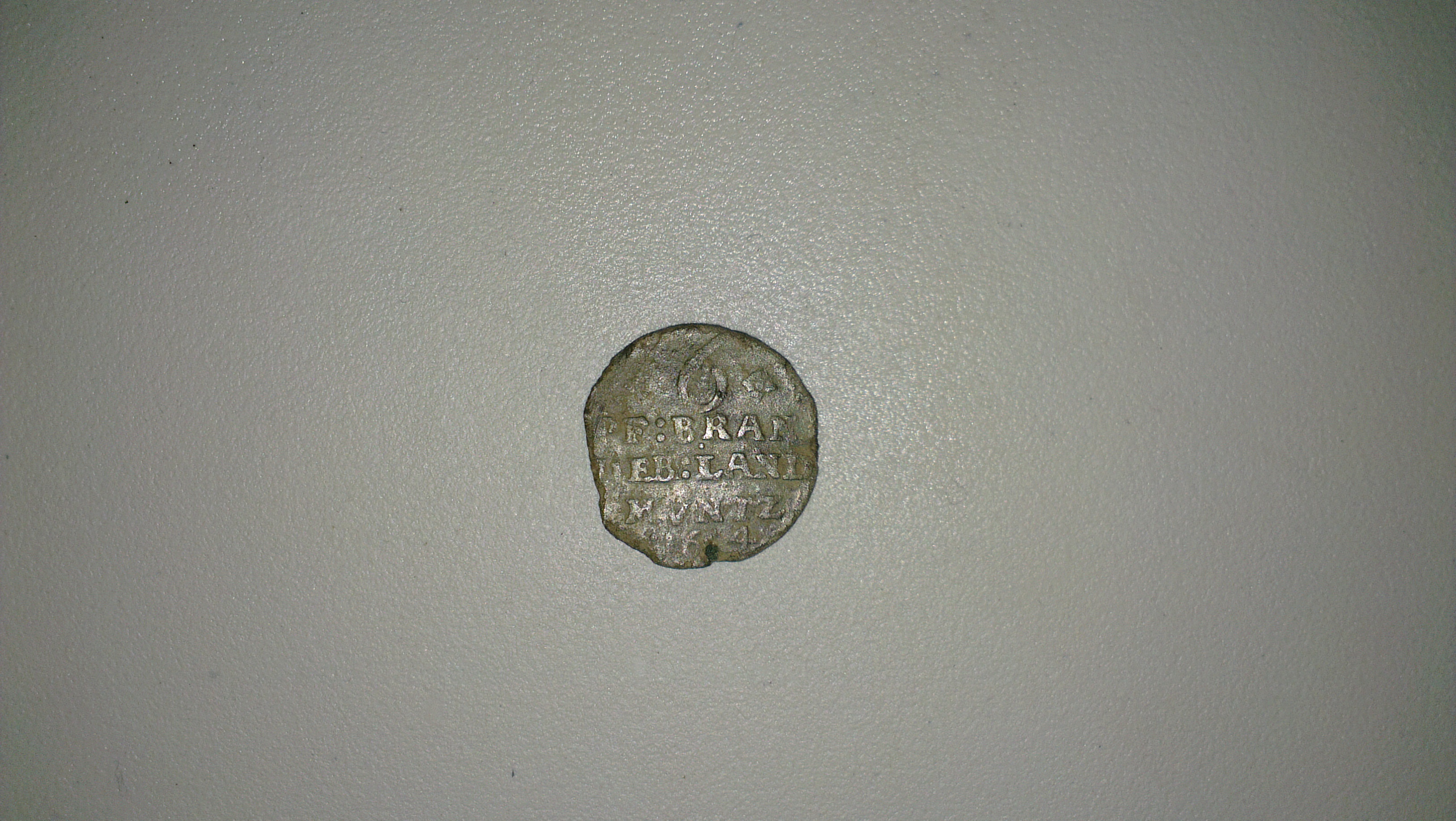 Das erste bild zeigt die Zahl 6, denke das ist der wert der Münze, danach die Aufschriften "PF:BRAN" darunter steht "IEB:LAND" darunter "MVNTZ" das Prägejahr müsste "1614" sein, will mich bei keiner der angaben festlegen, da die Münze am Rand etwas in die Jahre gekommen ist.....