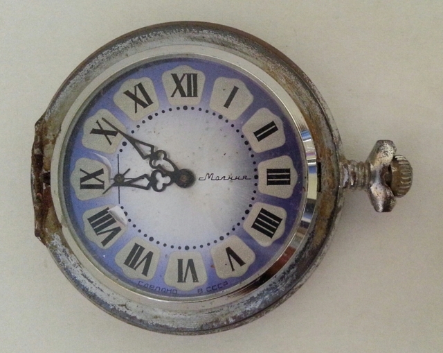 Mitten auf einem großen Acker habe ich eine Taschenuhr (5cm Durchmesser 80 gr. Gewicht) gefunden.