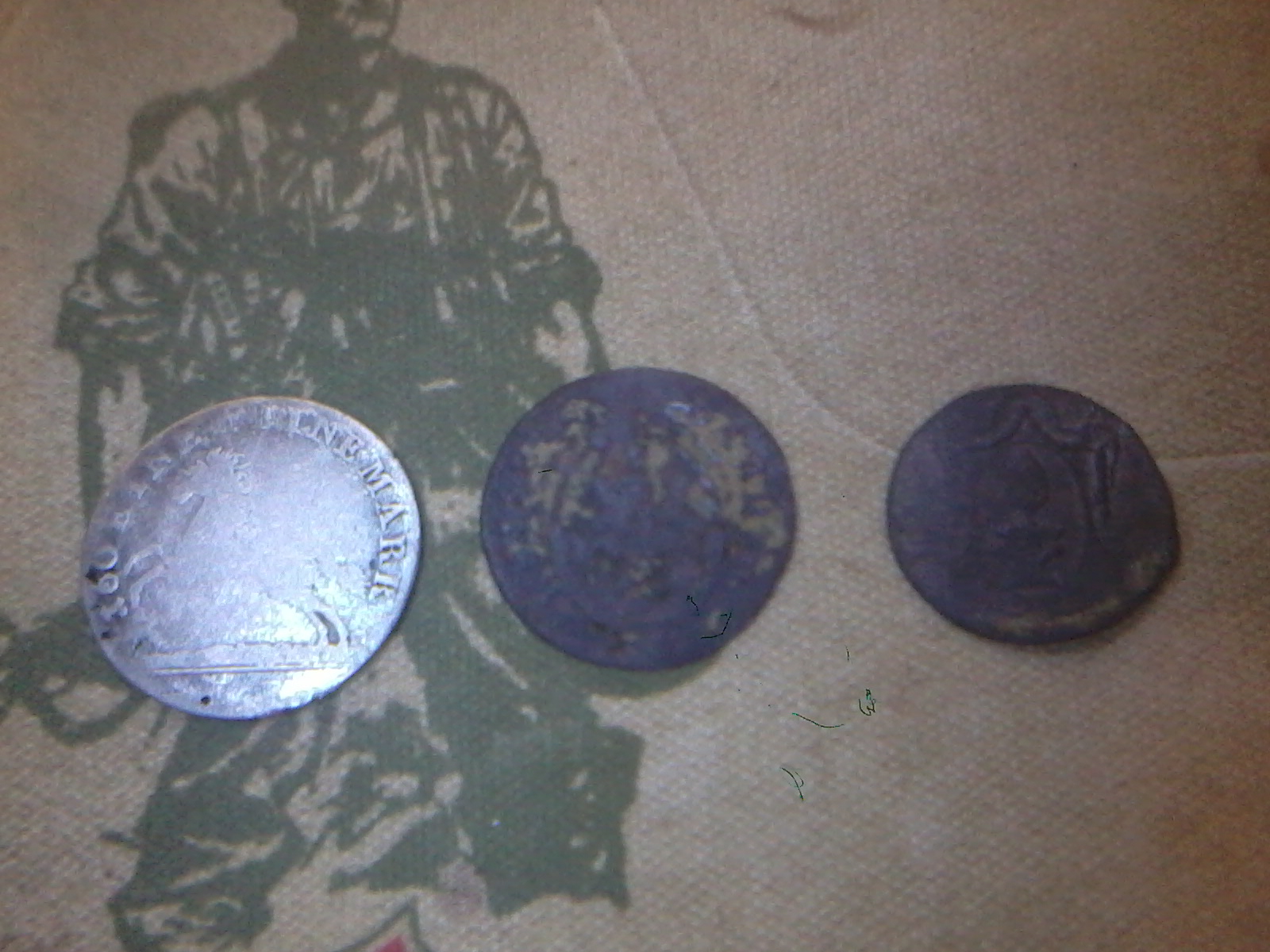 Habs unters zweite bild drunter geschrieben, aber es sind 3 Mariengroschen 1821, der mittlerwere ist Hessen Darmstadt nur die vorderseite sieht man nicht mehr, und der rechte ist ein 1 Pfennig aus Augsburg