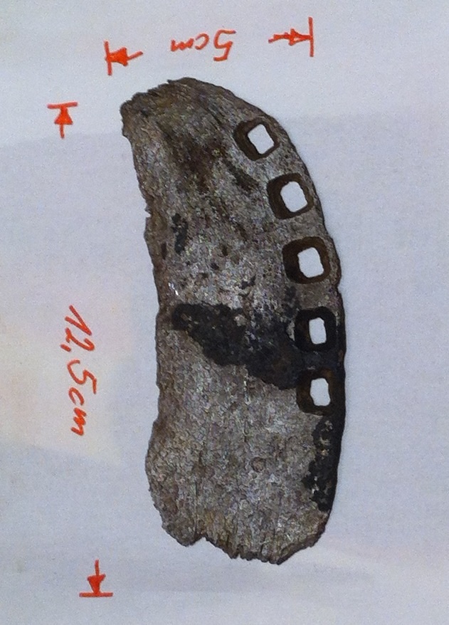 nach internen Information aus dem Forstamt über ein Teistück eines alten Handelsweges nach Böhmen, fand ich in diesem Hohlweg diese nichtrostende Eisenteil. Ist das vielleicht eine Sichelwaffe. Die Stärke ist 3 mm und unten scharfkantig geschmiedet. Die Löcher sind auf einer Seite eingesenkt. Kann mir dazu jemand was schreiben auch bezgl. welches Jahrhundert(15.16 ?)