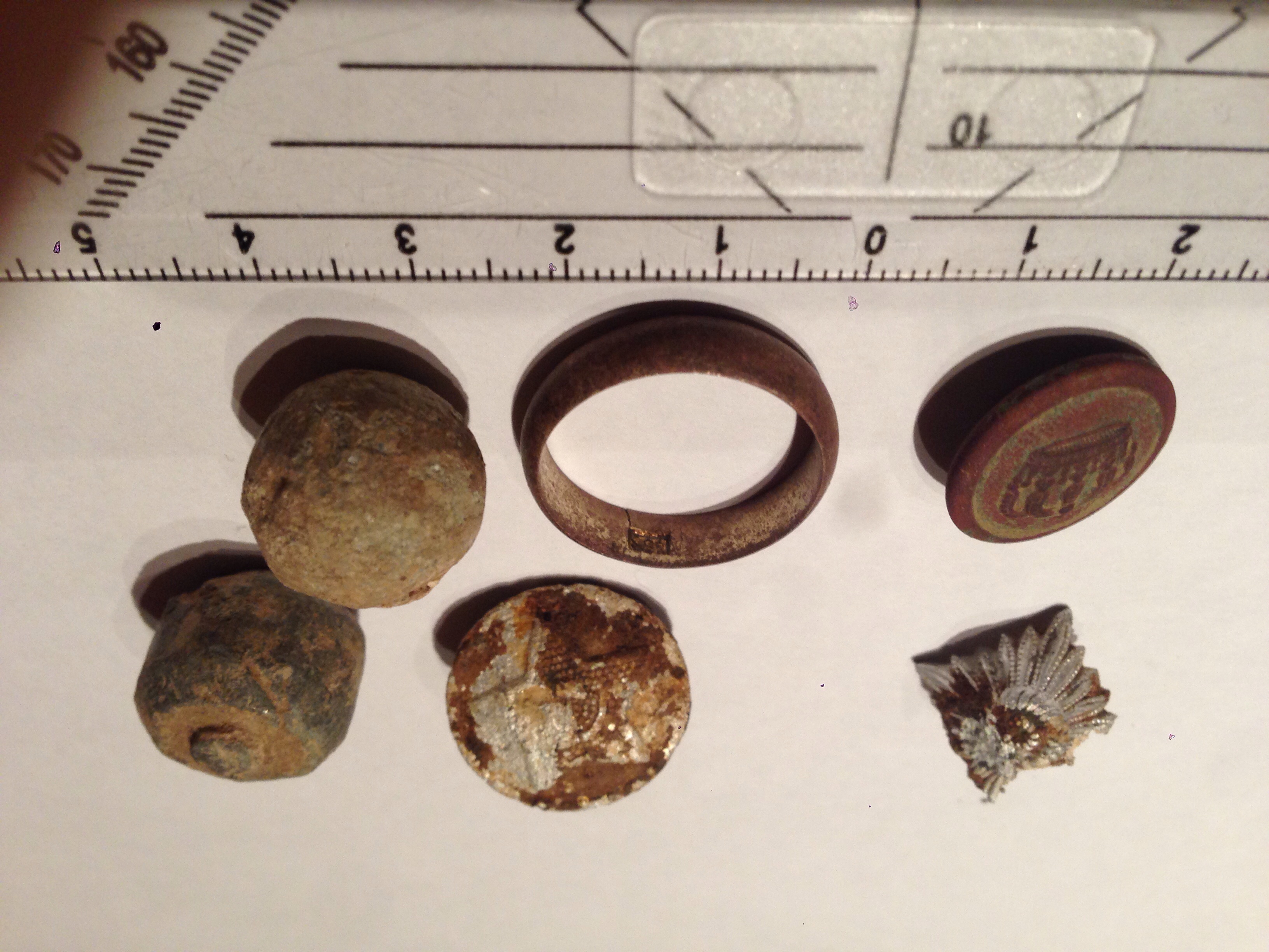 3 Knöpfe sowie noch 2 Musketkugeln (vermute ich).