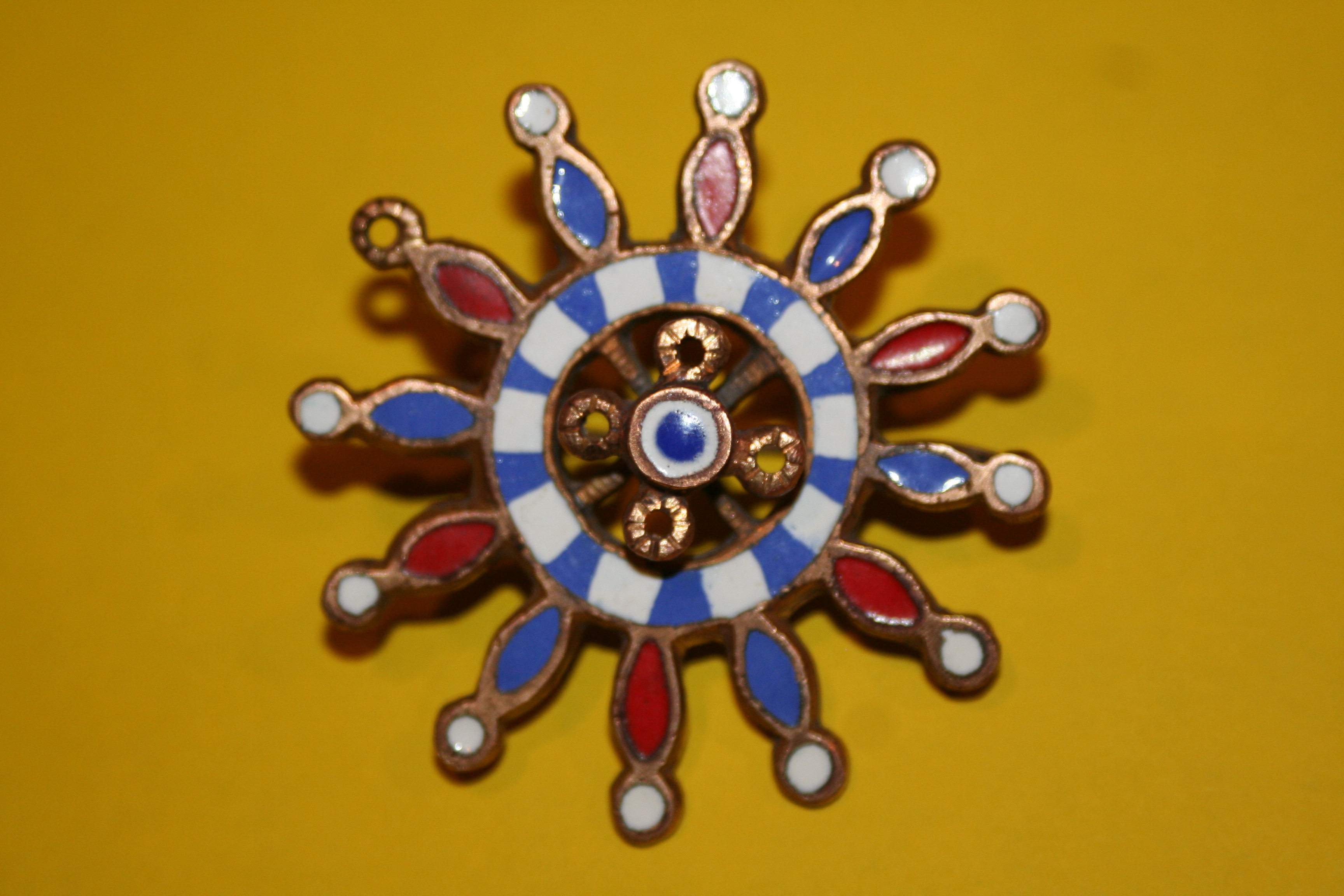eine schon etwas mitgenommene Scheibenfibel.