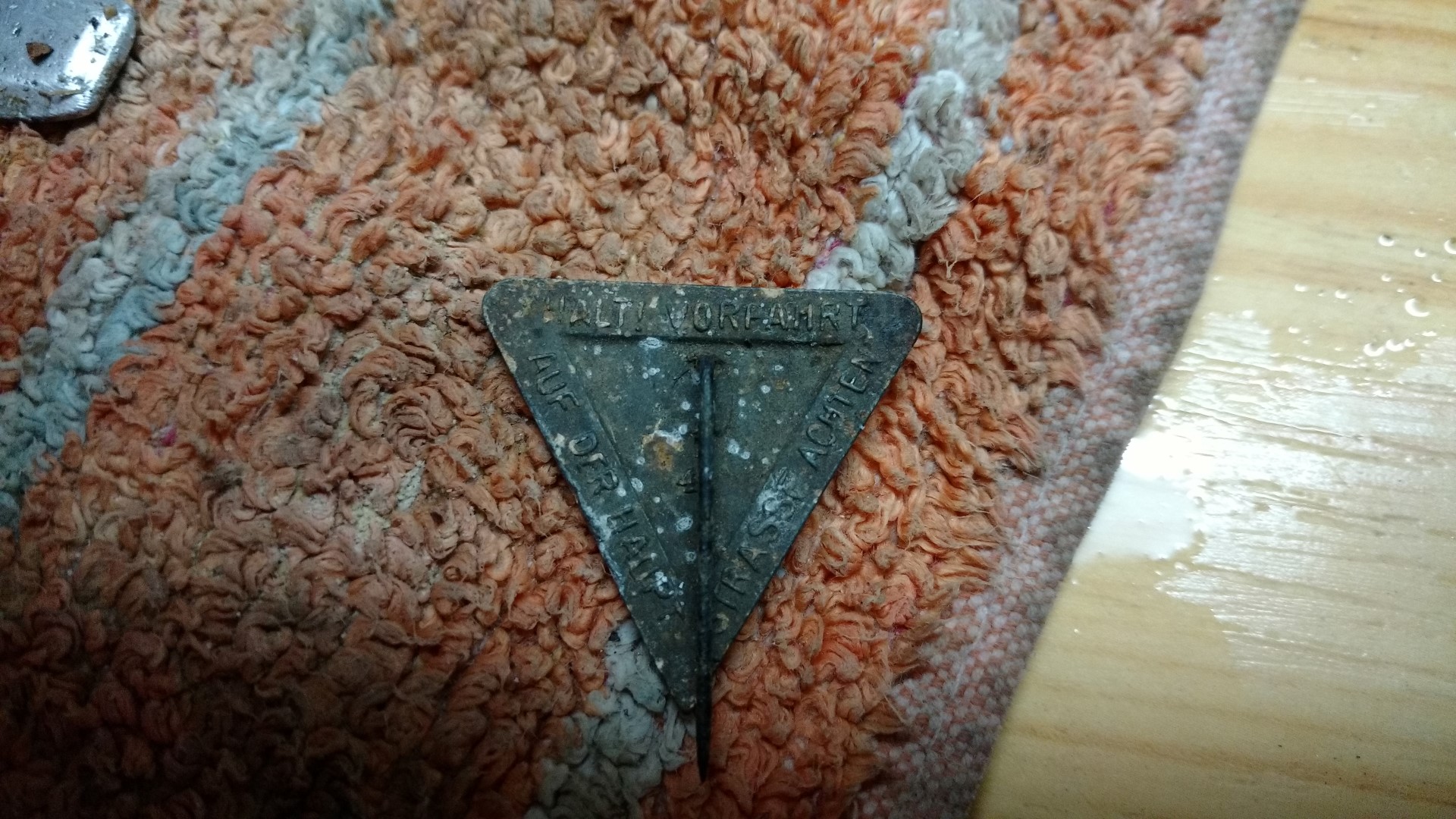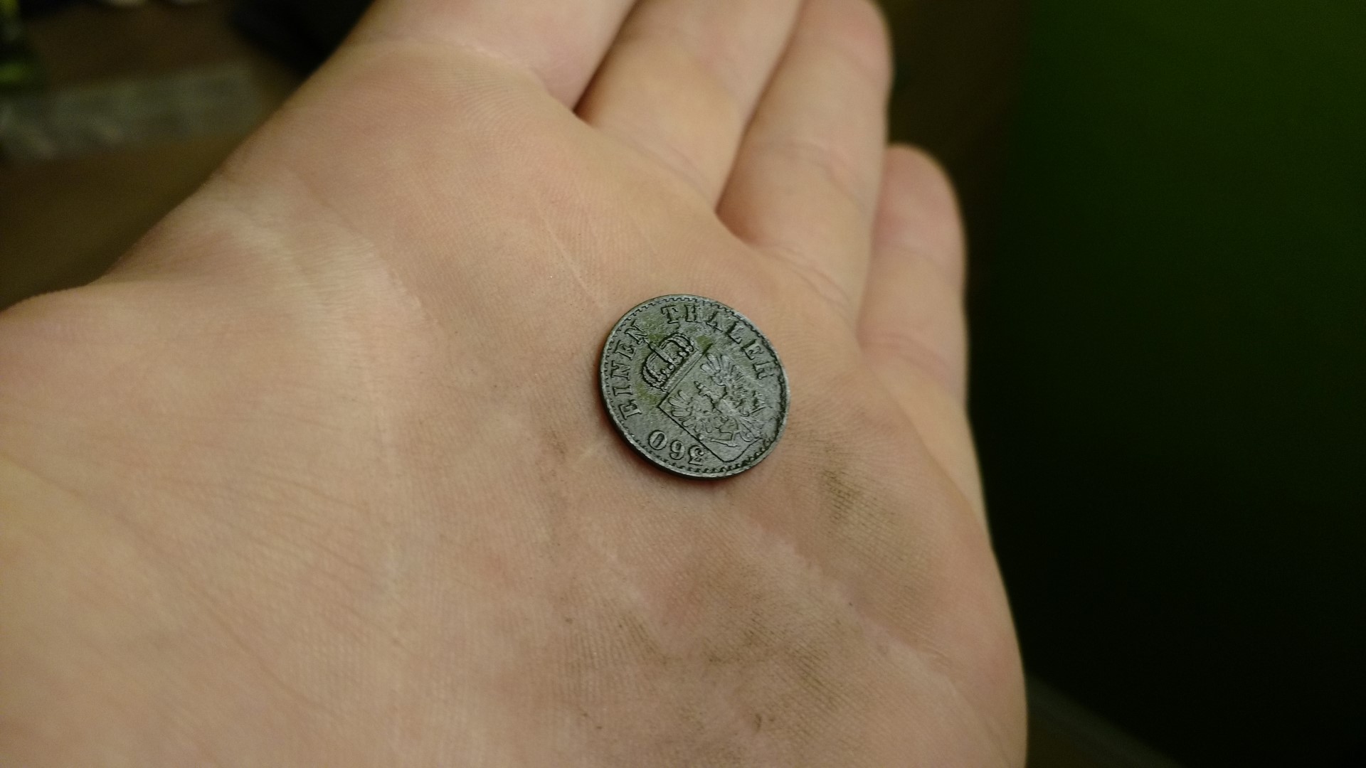 Ich verfolgte den Weg ein paar Meter und fannd auf dieser Strecke alle 3 Münzen, eine Bleiplombe von "Vitello Margarine", nen Knopf und am Wegesrand das ASB Abzeichen.