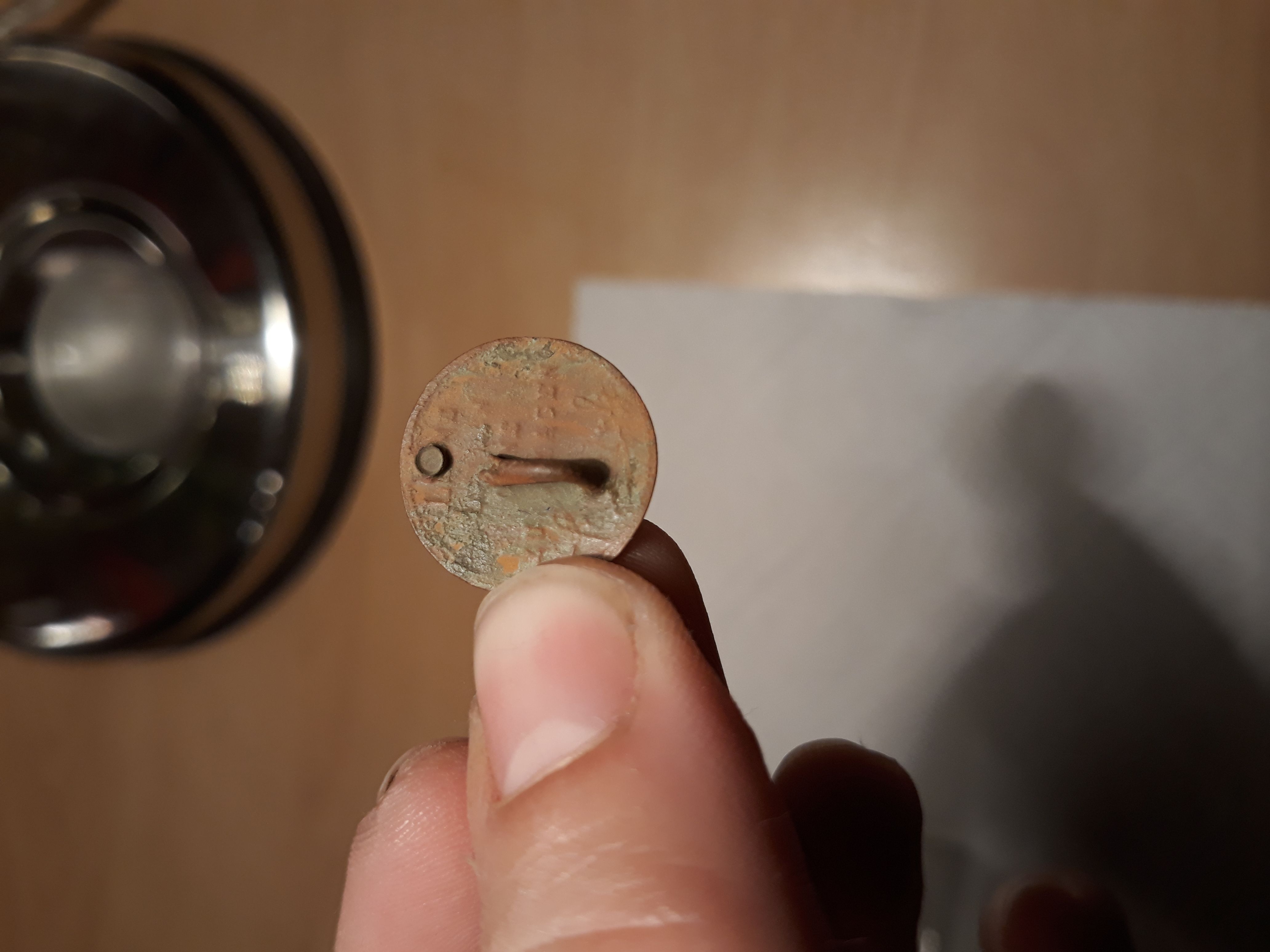 vielleicht weiß hier jemand was dazu? Material Kupfer, Öse angelötet. Vorderseite: Männerkopf, denke mit Umschrift. Zu klein um sie lesen zu können. Rückseite: ich kann nur "zu lagen"..erkennen und eine Unterschrift darunter.