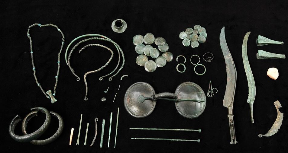 Beim Messer würde ich gerne das alter Wissen ,Das Messer ist aus Kupfer und ich denke mal von Hand gearbeitet ,weil es unförmig ist.