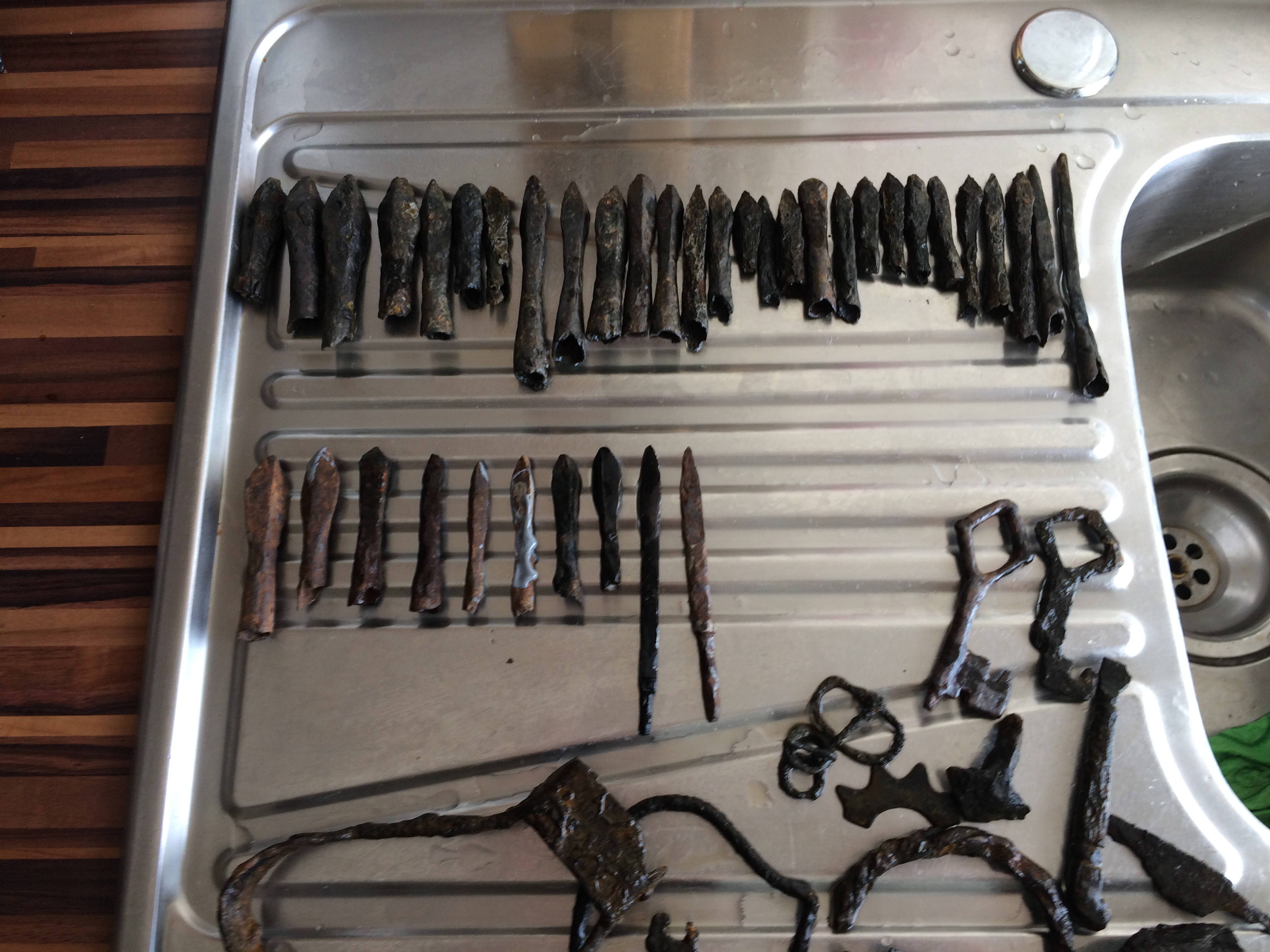 Ein Maulwurf warf mir neulich einen Rostklumpen vor die Füße. Da ich mit Fundreinigung noch nicht so viel zu tun hatte, versuchte ich mich mal an diesem Stück.Ich legte es ca. eine Woche in destilliertes Wasser, bürstete vorsichtig mit ner Dr. Best Erdreste und groben Rost ab und staunte nicht schlecht...aber schaut bitte selbst und sagt mir mal was es eurer Meinung nach ist und wie alt es sein könnte...