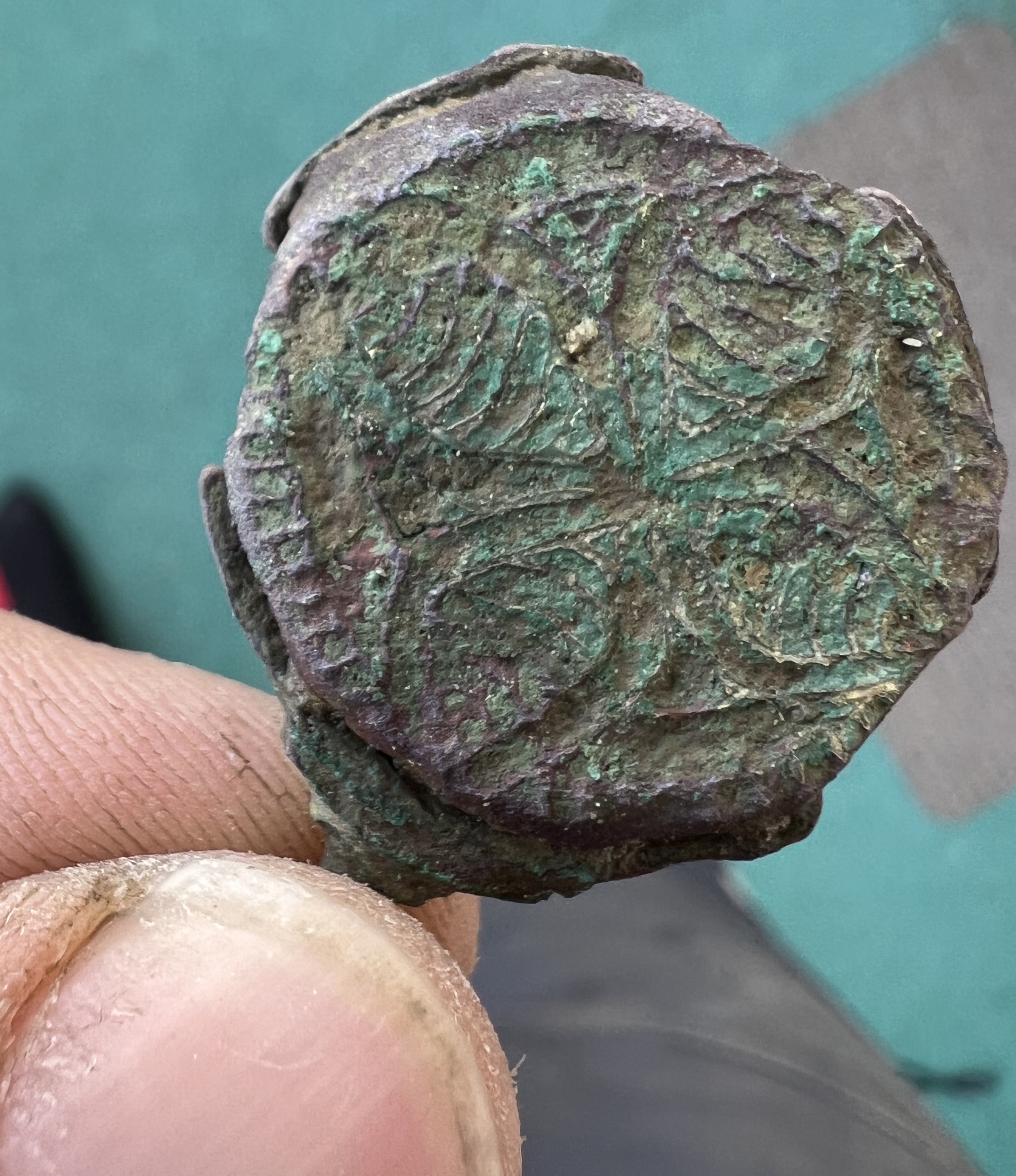 ich habe bei meiner Suche folgendes gefunden, vielleicht kann mir jemand von euch weiterhelfen bei der Fundbestimmung, es ist etwa so groß wie eine 50Cent Münze. Meine Tendenz ist zu einem Anstecker oder vielleicht eine Siegelkapsel.