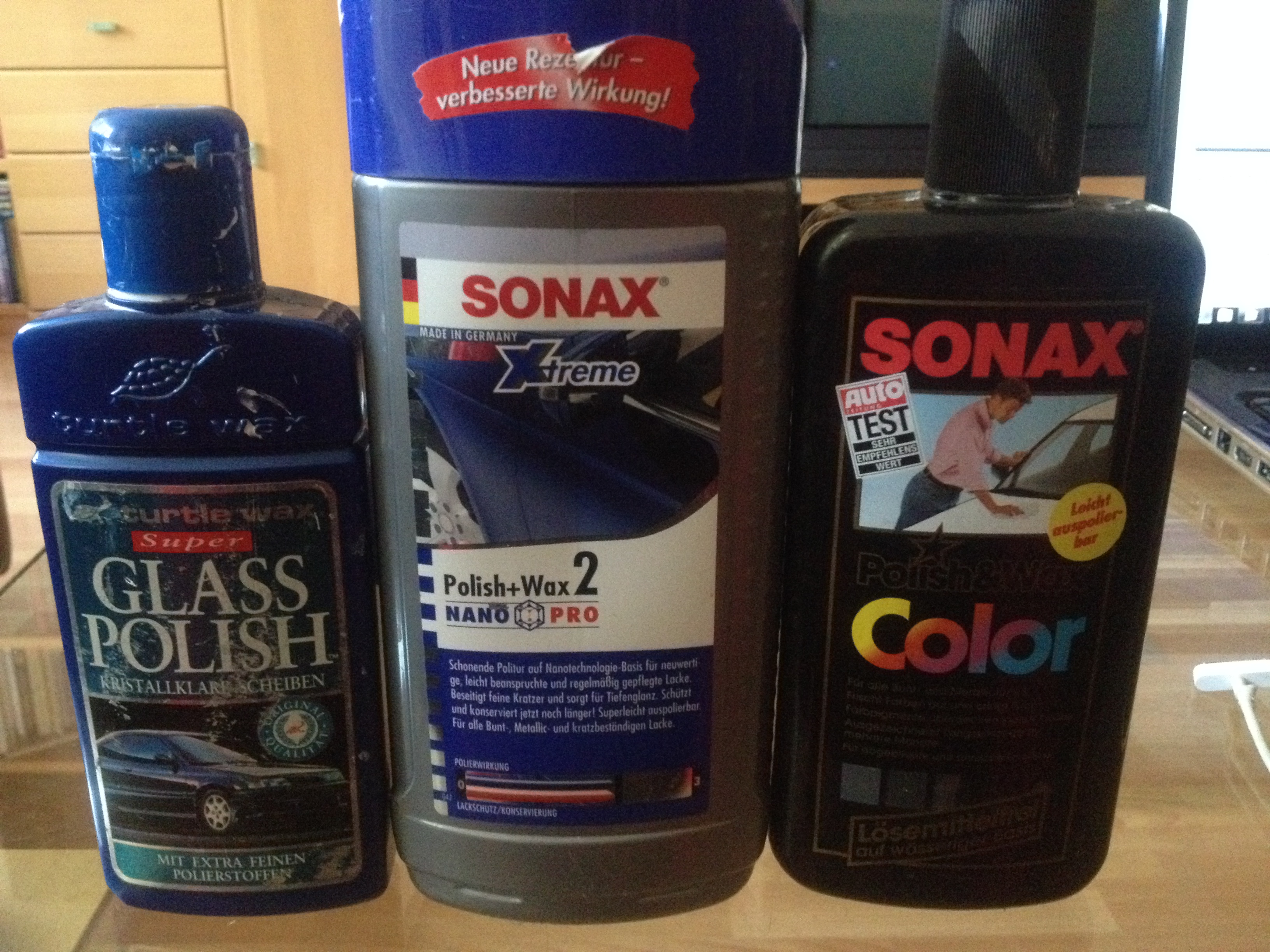 Hier mal ein Bild von den Polituren die ich zur Farbauffrischung sowie Kratzer Beseitigung benutze,