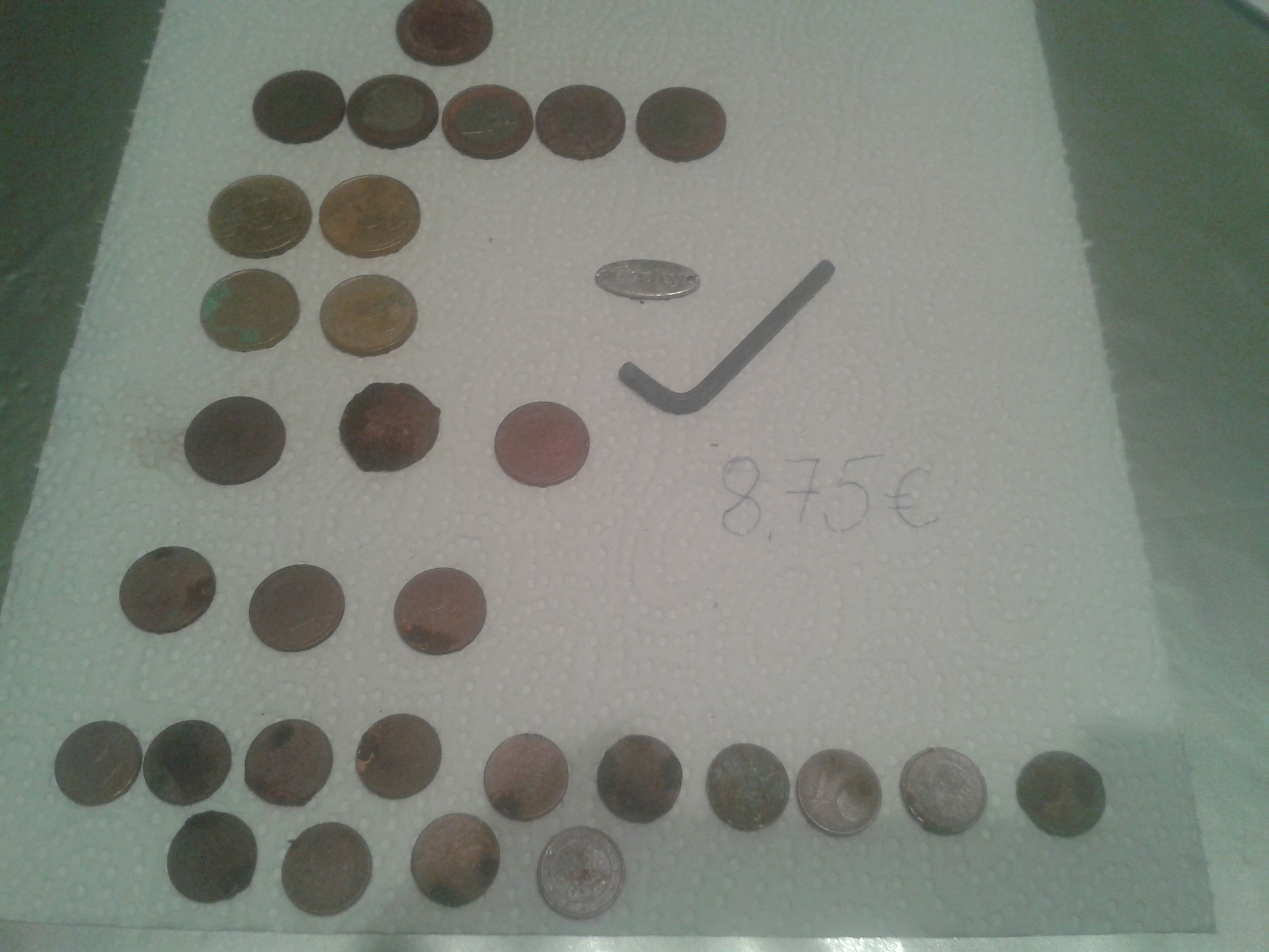Eisen habe ich immer diskriminiert, also schlägt nur das Kupfer als Ton an bei den Centmünzen.