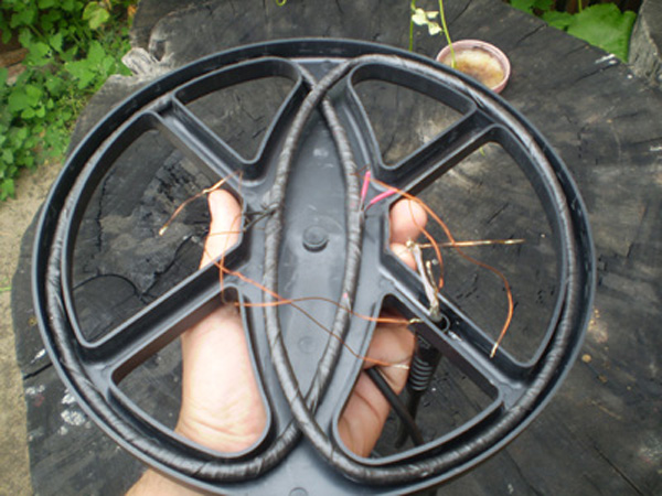 Was natürlich wichtig ist - da gebe ich Recht ist der korrekte Abgleich der Spulen, wobei es auch hier wieder ein bisschen unkritisch ist, ob der Detektor (10kHz) am Ende mit 9,8kHz oder 10,2kHz läuft (dies lässt sich bei der handgewickelten Spule auch wieder sehr schön einstellen). Ganz wichtig ist natürlich der Abgleich zwischen den Spulen, also dass ohne Einfluss von außen (kein Metall in der Nähe) auch kein elektromagnetisches Feld in der Empfängerspule empfangen wird (oder nur so klein, dass es noch keinen Ausschlag / Ton ergibt). Das ist ein bisschen eine Herausforderung. Und danach natürlich die Fixierung der Spulen in der entsprechenden Lage. Dass hier Schaumstoff oder so als Füllmaterial verwendet wurde ändert nichts an den Eigenschaften der Spule, der Rest wurde ja vergossen (so wie es aussieht). Wenn das Füllmaterial leichter ist als die Vergussmasse wirkt sich das auch positiv auf das Gewicht aus.