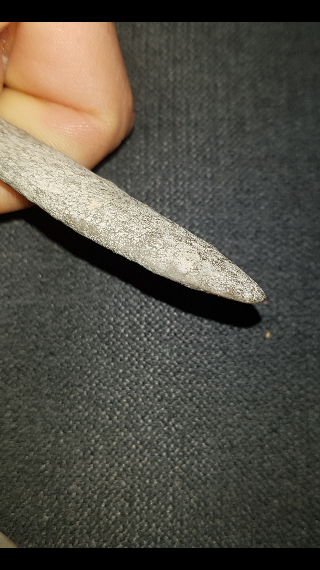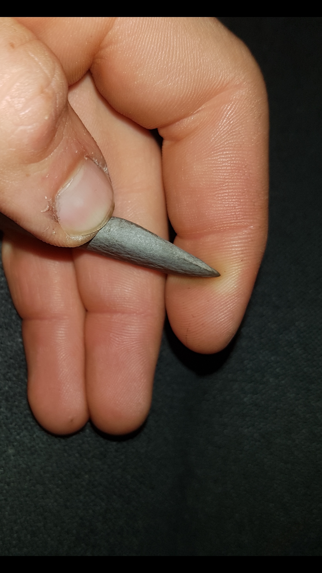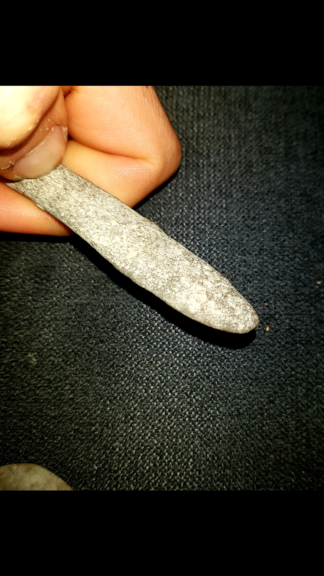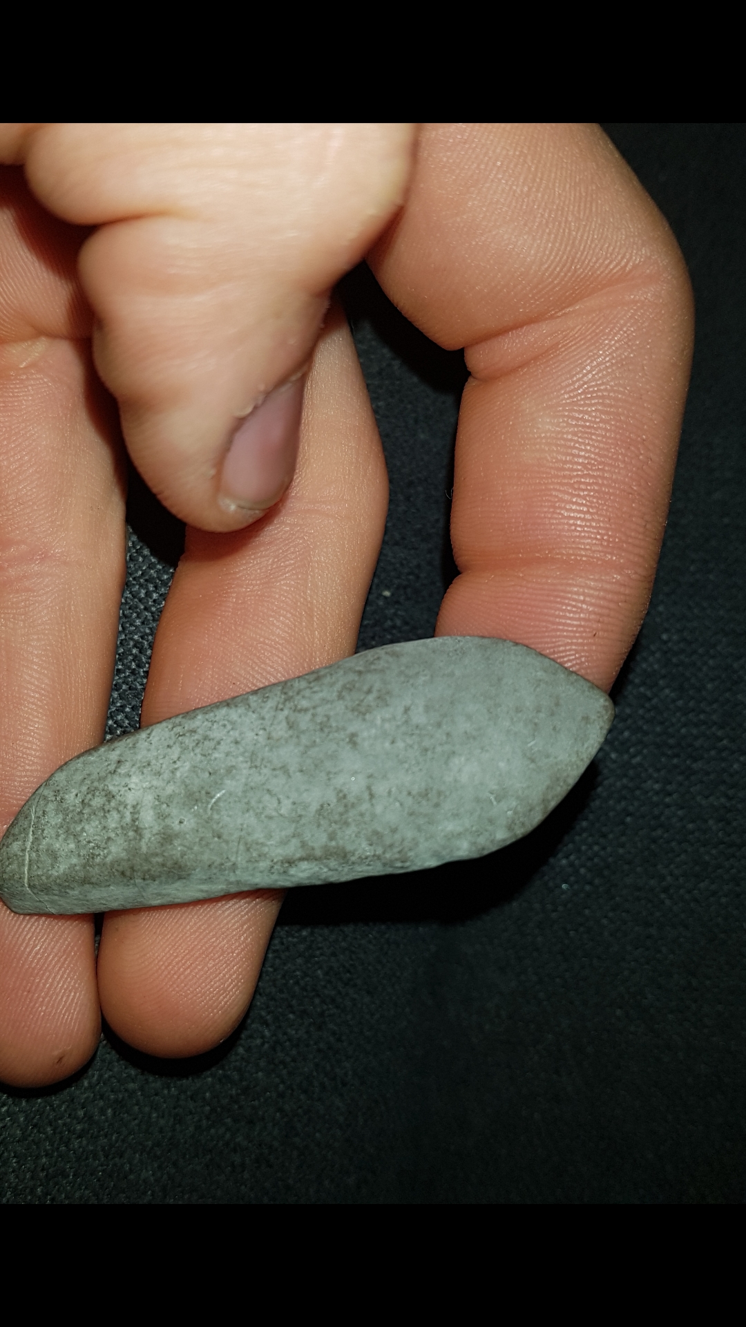 Habe diese 2 Stücke schon länger bei mir rumliegen aber frage mich jetzt doch ob es sich nicht um Steinzeitliches Werkzeug handeln könnte. Das Material ist zwar mutmaßlich Basalt, was ungewöhnlich wäre aber ich finde sie haben doch schon sehr "werkzeugähnliche" Formen. Vor allem das längliche Stück ähnelt sehr einem Schaber oder einem Messer da das vordere Drittel und die Spitze (schwierig auf dem Bild darzustellen) wie bei einer Klinge zuläuft und auch recht scharf ist. Auch das kleinere Objekt läuft vorne scharf zu und lässt auch eine dreiecksform wie zum Beispiel bei einer Pfeilspitze erkennen.
