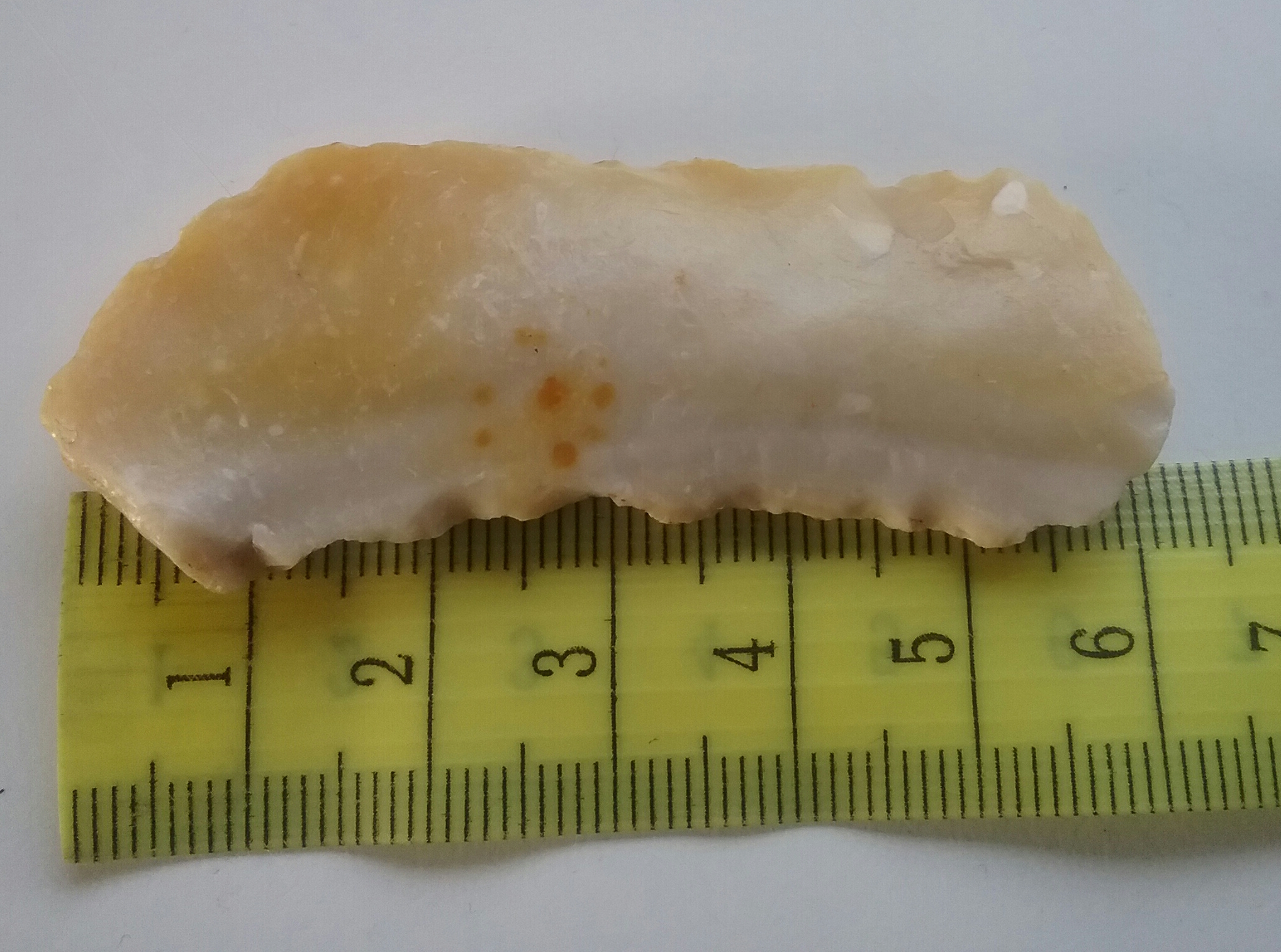Ja ist ein Werkzeug..................grob retuchierter schaber,klinge aus Hornstein Neolithikum Jungsteinzeit bis frühe bronzezeit.........Süddeutschland Bayern sehr schöne glatte Wölbung.Aus welchem Bundesland kommst du,ich interresire mich sehr um die Verbreitung,handel solcher materialien
