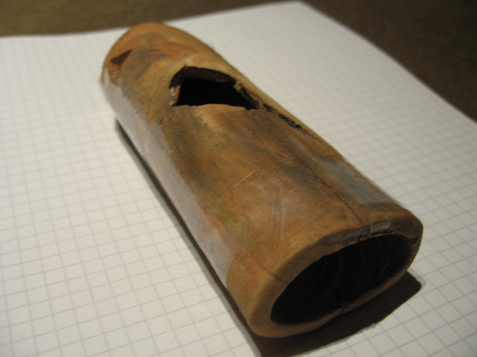 Von der Form her hatte ich eben beim ersten Blick gedacht ein Gefäß um darin einen Wetzstein einer Sennse bei der Feldarbeit feucht aufzubewahren...