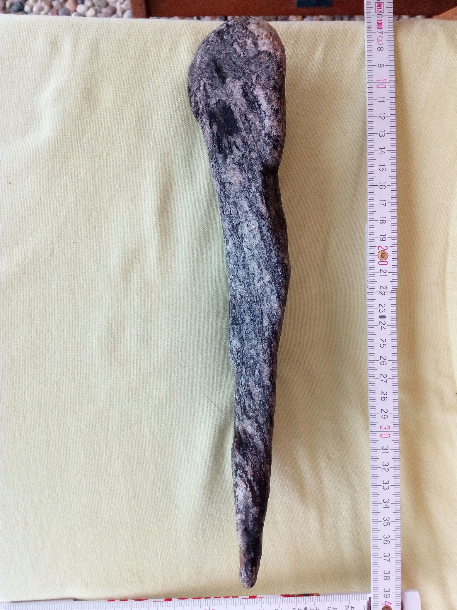 Sieht aus wie ein Dolch, ist aber aus Granit. Liegt gut in der Hand.