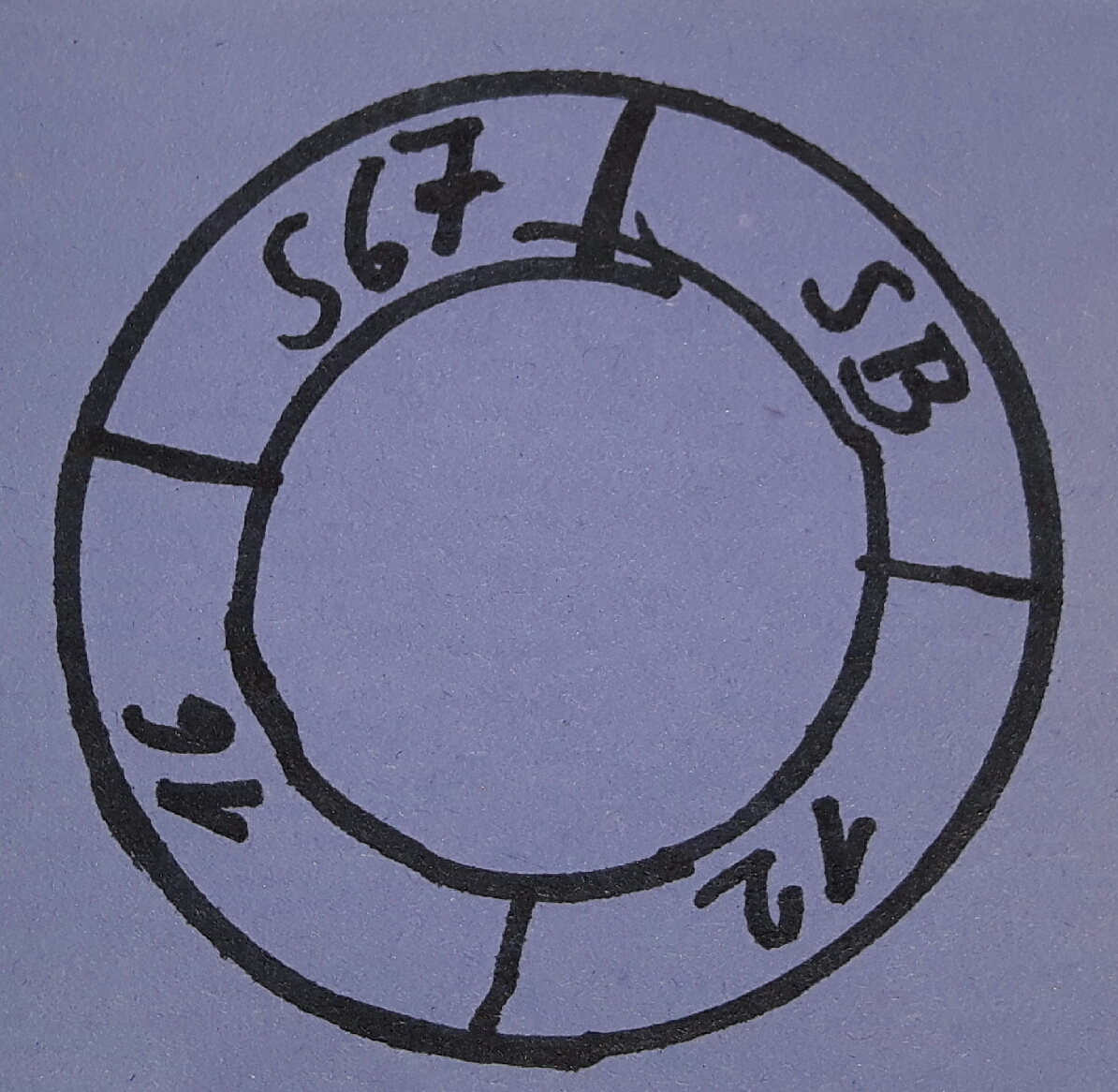 Leider bekomme ich den Bodenstempel nicht scharf aufs Foto, darum habe ich mal eine Skizze davon gemacht.