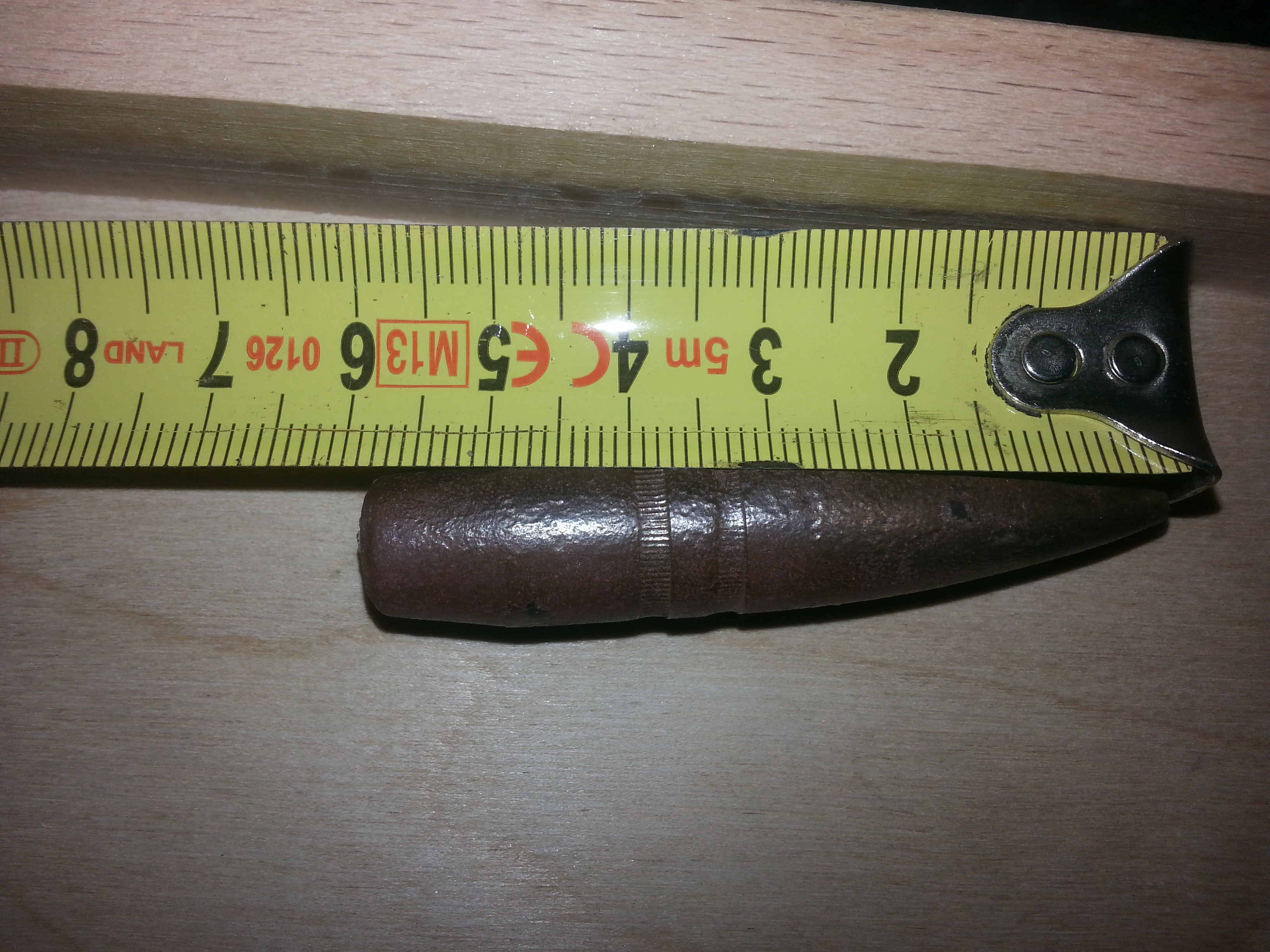 Du meinst weil dort keine Farbmarkierung ist?Das Geschoss lag ja auch schon 70 Jahre im Boden.Das wo ich gefunden hab hatte auch nur noch Reste von blauer Farbmarkierumg.Die Farbmarkierungen überdauern die Zeit leider nicht immer.Am besten sieht man sie noch wenn man das Geschoss frisch aus der Erde holt.Wenn man das Geschoss dann reinigt sind die Farben meißt sowieso weg. :weisheit: