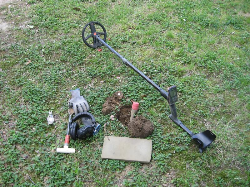 The next silver coin I found was a 1944 Washington quarter. It was close to the shrub bed and gave a sweet squeaky high pitched audio response and a ID number of 93. It was no doubt in my mind that I had a silver quarter under the search coil, so I cut the plug a little larger so not to hit it with my digger.