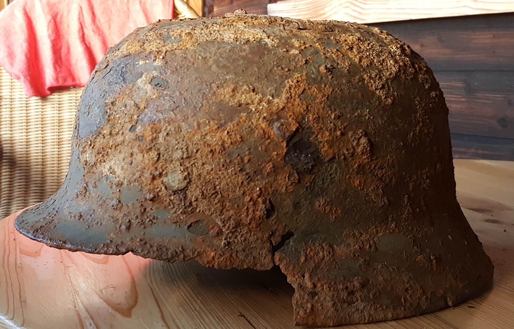 Da von dem Stahlhelm ständig etwas abbröselte, konnte ich ihn nicht im Original zustand belassen.