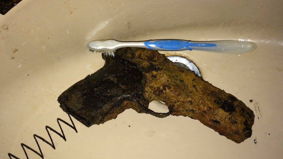 Ist schon etwa 2 Monate her und sie ist auch nicht mehr in meinem Besitz (bereits am nächsten Tag bei der Polizei abgegeben) aber hab mich damals natürlich riesig gefreut über den Fund. Bis dato, abgesehen von Knöpfen und Munition, auch mein einziger Militariafund. Schätze mal maximal 40 Jahre alt: