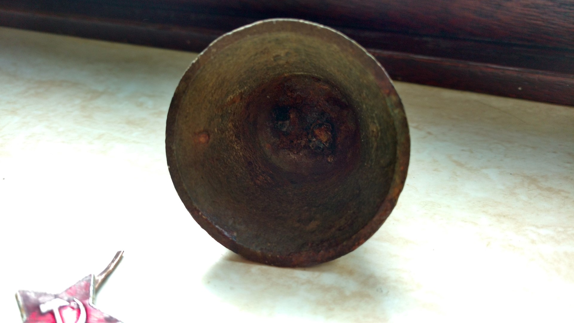Bild 3:Knopf mit Inschrift, vorne blank, für mich zu erkennen sind folgende Buchstaben: BIRMINGA.HM !BITTE UM BESTIMMUNG!
