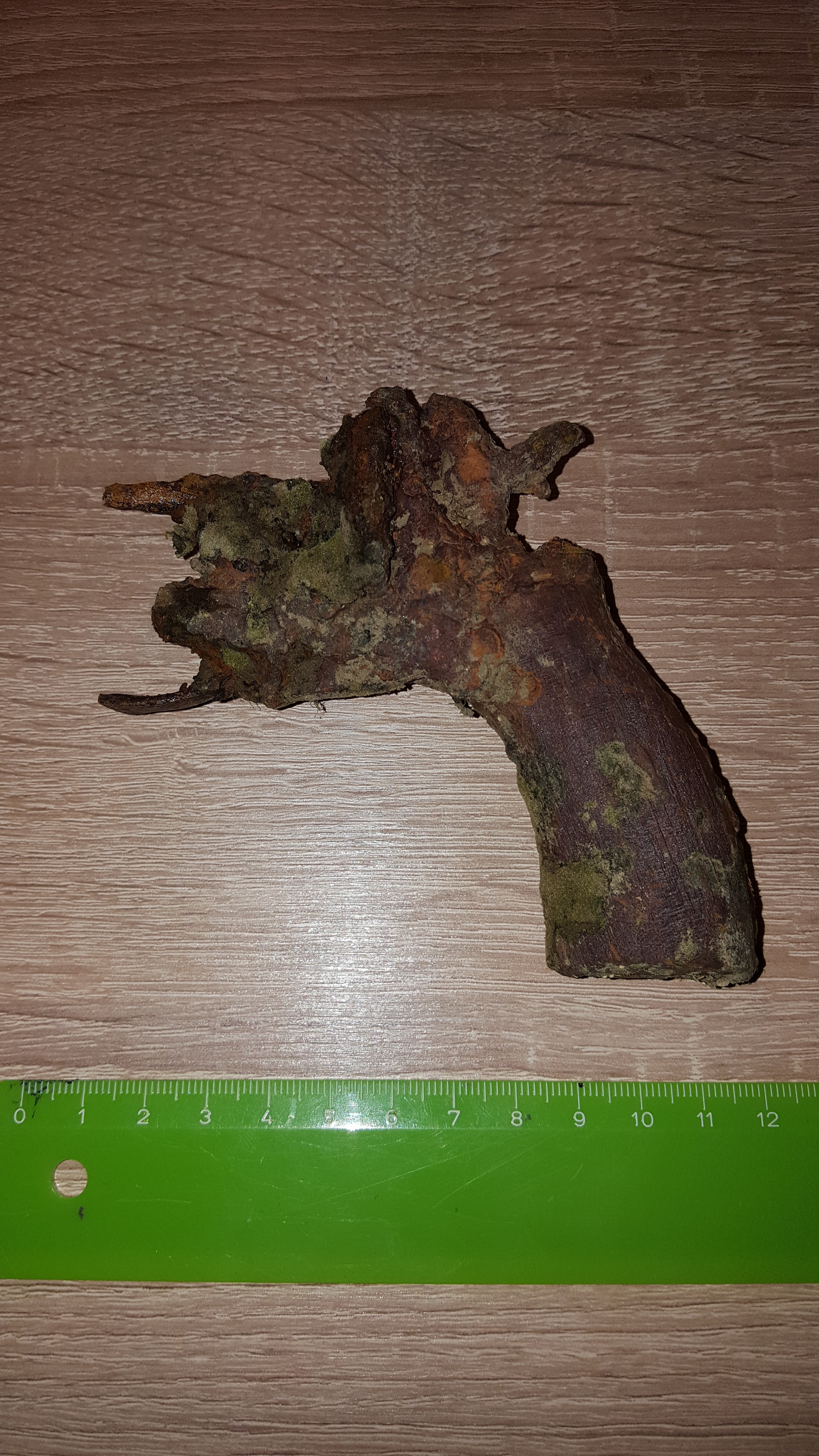 war heute wieder mit meinem Magneten am Rhein (in der Nähe von Remagen), neben allerlei Schrott habe ich auch einen Revolver gefunden, zumindest ein Teil davon.