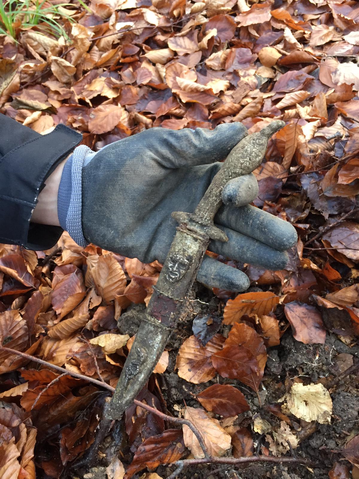Habe letzte Woche im Wald diesen Dolch gefunden. Hatte leider bislang keine Zeit, das Messer von der scheide zu trennen oder generell den Dolch sauber zu machen.