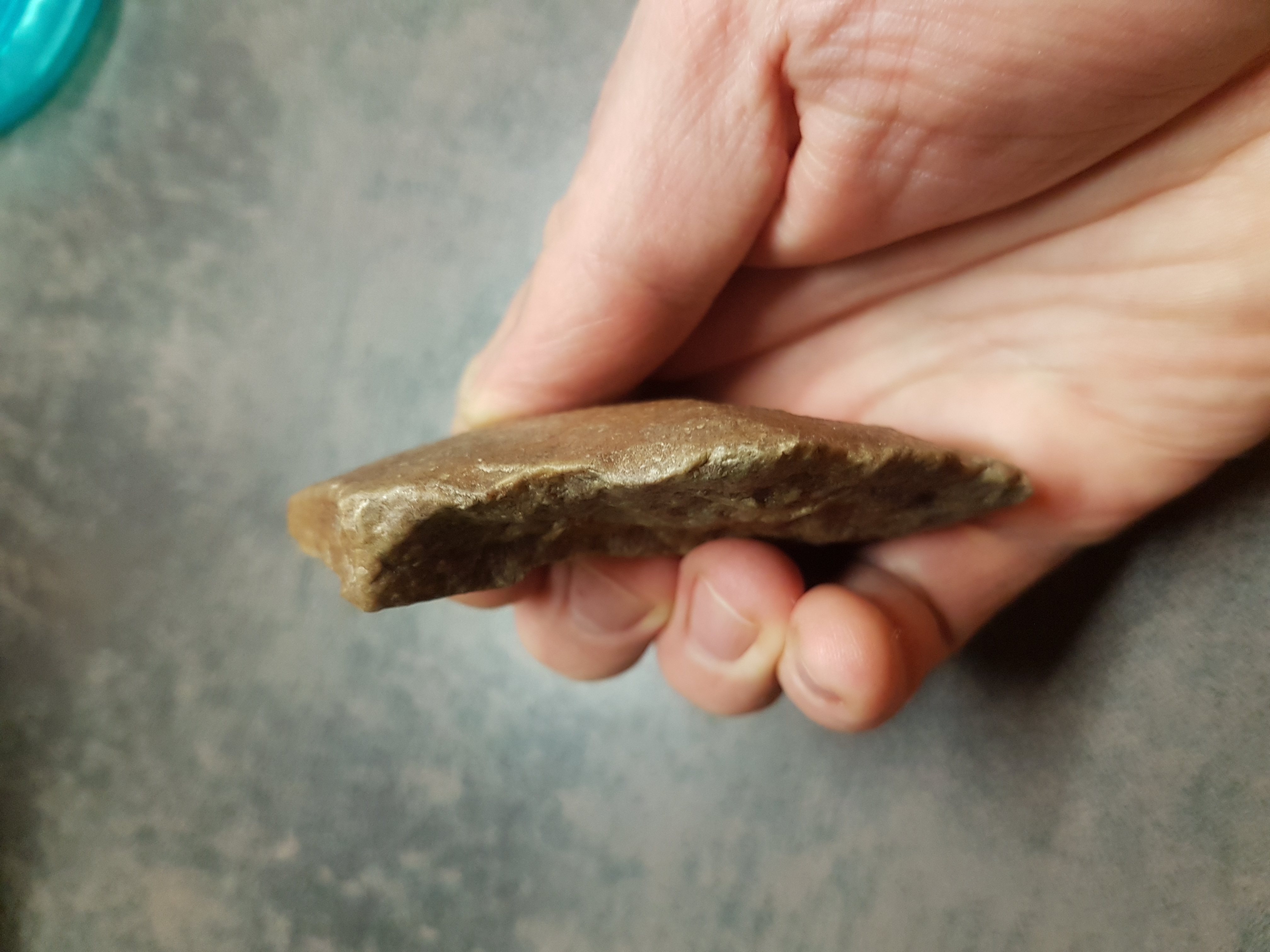 Hab diesen Stein gefunden . Er ist aus Quarzit und stark patiniert. Denke das es ein Artefakt ist bzw. ein Werkzeug . Größe ca. 9 cm × 6 cm und leicht gebogene Form . Tendiere Richtung Paläolithikum.