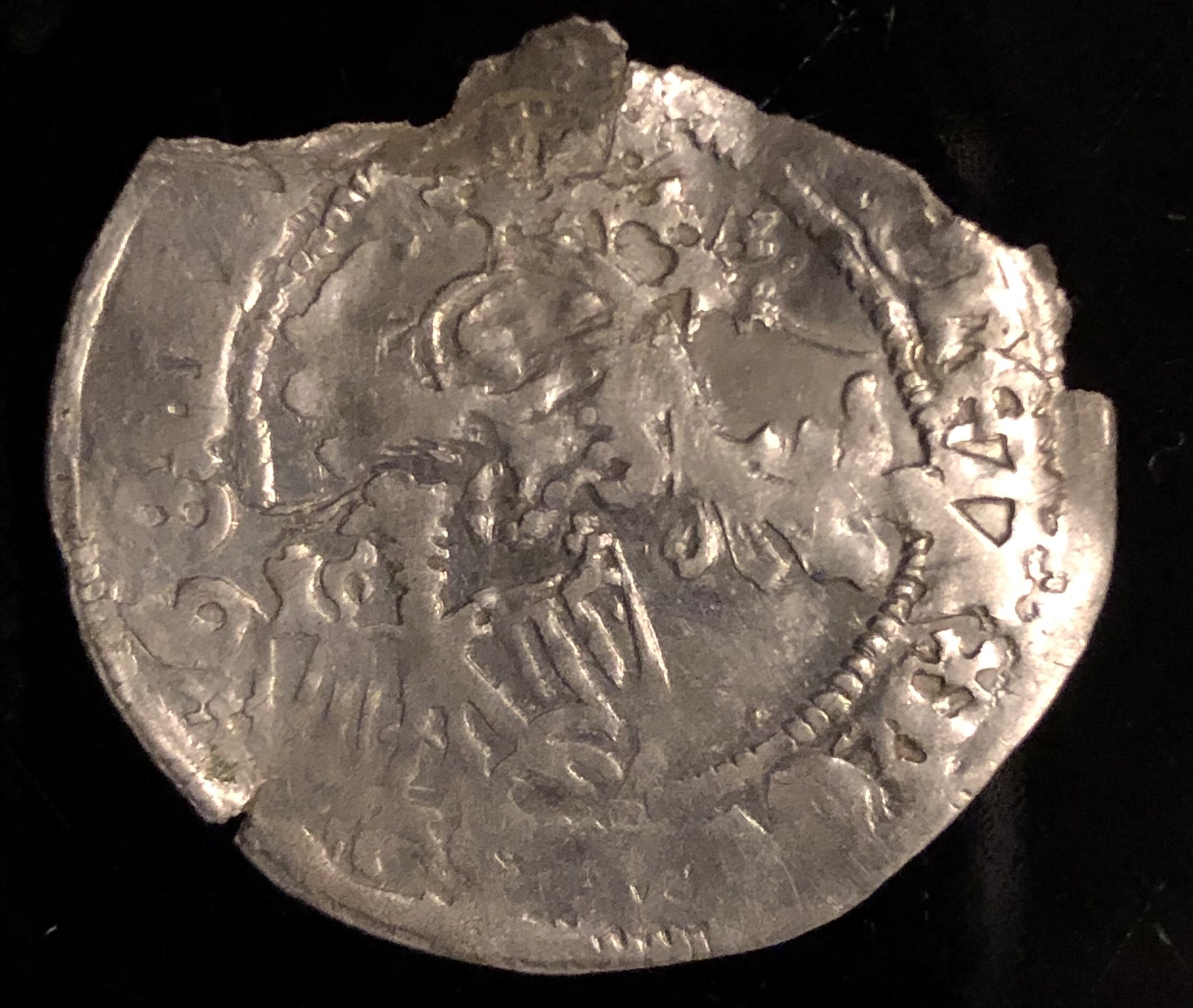 Hi, ich konnte die Münze nicht bestimmen. Könnt Ihr mir helfen? Durchmesser 28mm, Gewicht in diesem Zustand 2,04g. Originalgewicht vermutlich 2,4g. Datum vielleicht 1589...