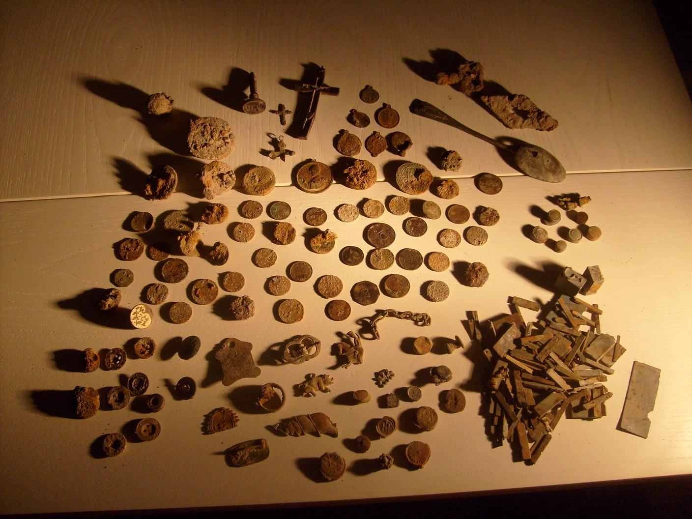 Der Fund des Hortes liegt ca. 2 Jahre zurück und habe ihn bei der Suche nach Goldflitter gefunden. Er ist nach Recht des Landes gemeldet wurden und laut Recht dieses Landes gehört der "Rest" nach zwei Jahren mir, muss aber zur Bergung einen amtlichen Archäologen hinzuziehen. Das was Ihr da seht sind ca. 1-5 % von dem, was da wirklich liegt und ich hoffe sehr, das der Staat nicht doch noch aktiv wird, denn so hätte ich nur 50% und leider nur in Geldform. Klar sollte die Stadt, die es betrifft, etwas davon haben, bin ich sehr dafür, nur wenn sich nichts rührt sind sie selbst schuld und so gehört der Hort mir. Mag in mancher Augen egoistisch klingen aber eins könnt Ihr gewiss sein, sollte von Seiten der Stadt Interesse bestehen stelle ich den Großteil des Fundes der Gemeinde als Dauerleihgabe zur Verfügung.